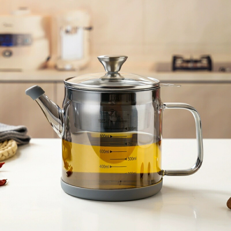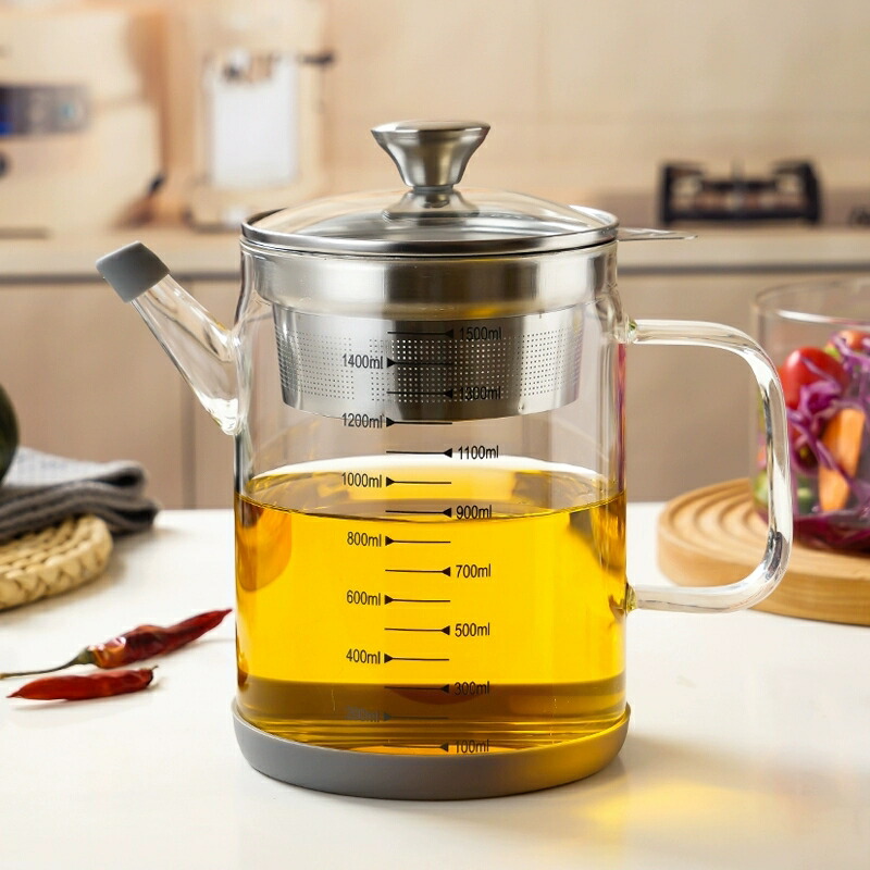 耐熱ガラス製多機能ポット 目盛り付き 保存容器 調味料入れ オイルポット 続々登場 透明 琥珀