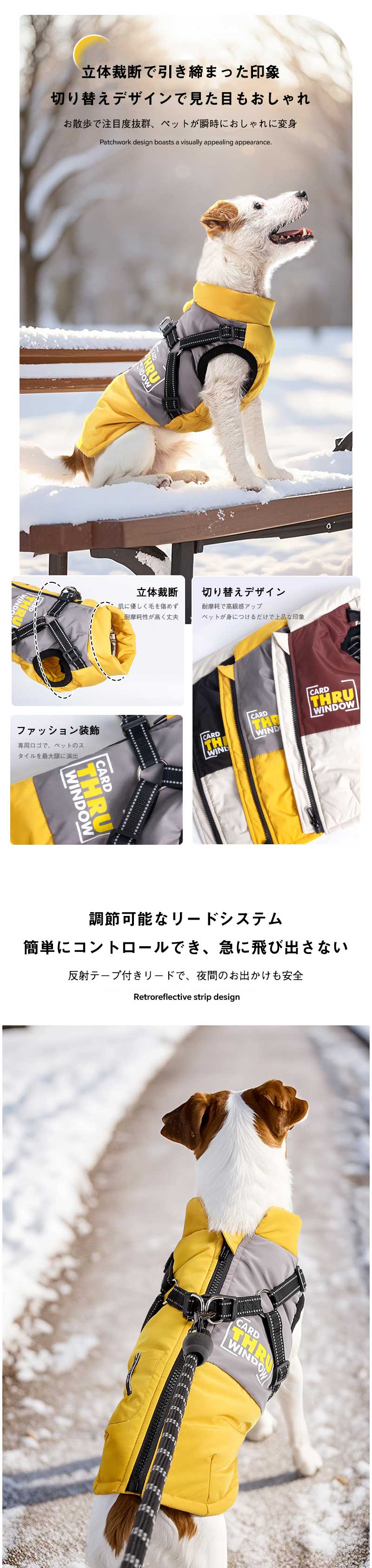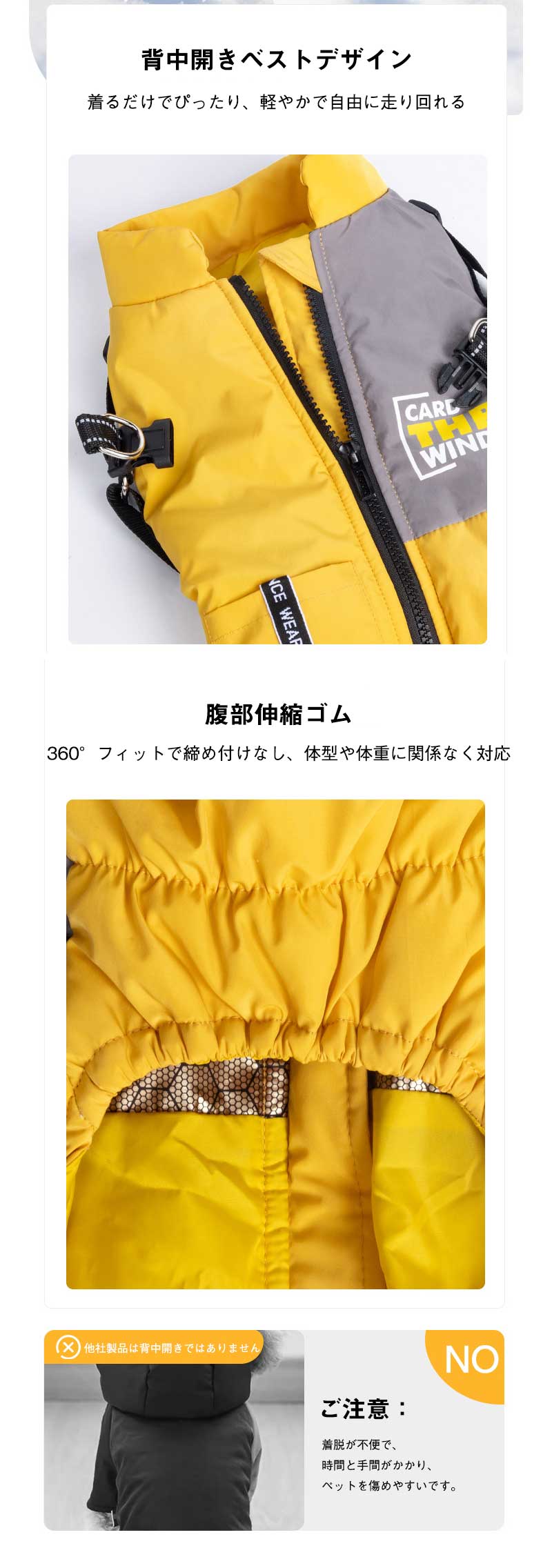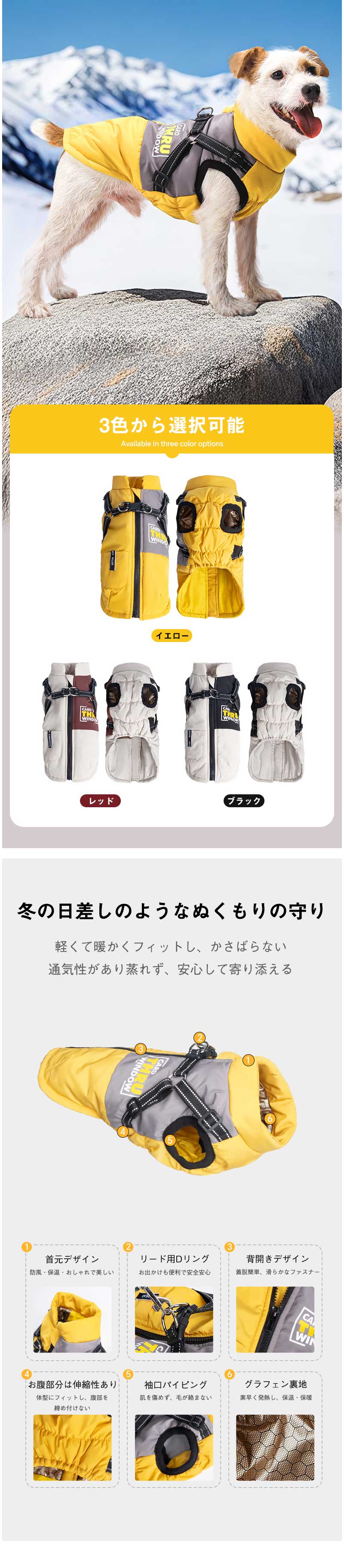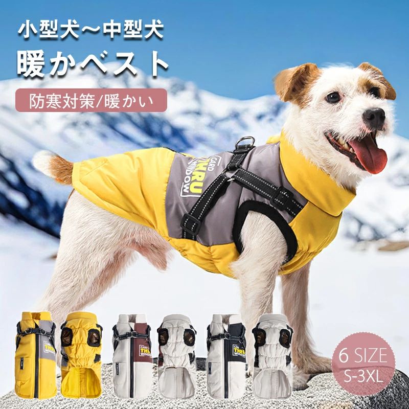 犬 暖かい ベストアウター ハーネス イエロー レッド ブラック S M L XL 2XL 3XL