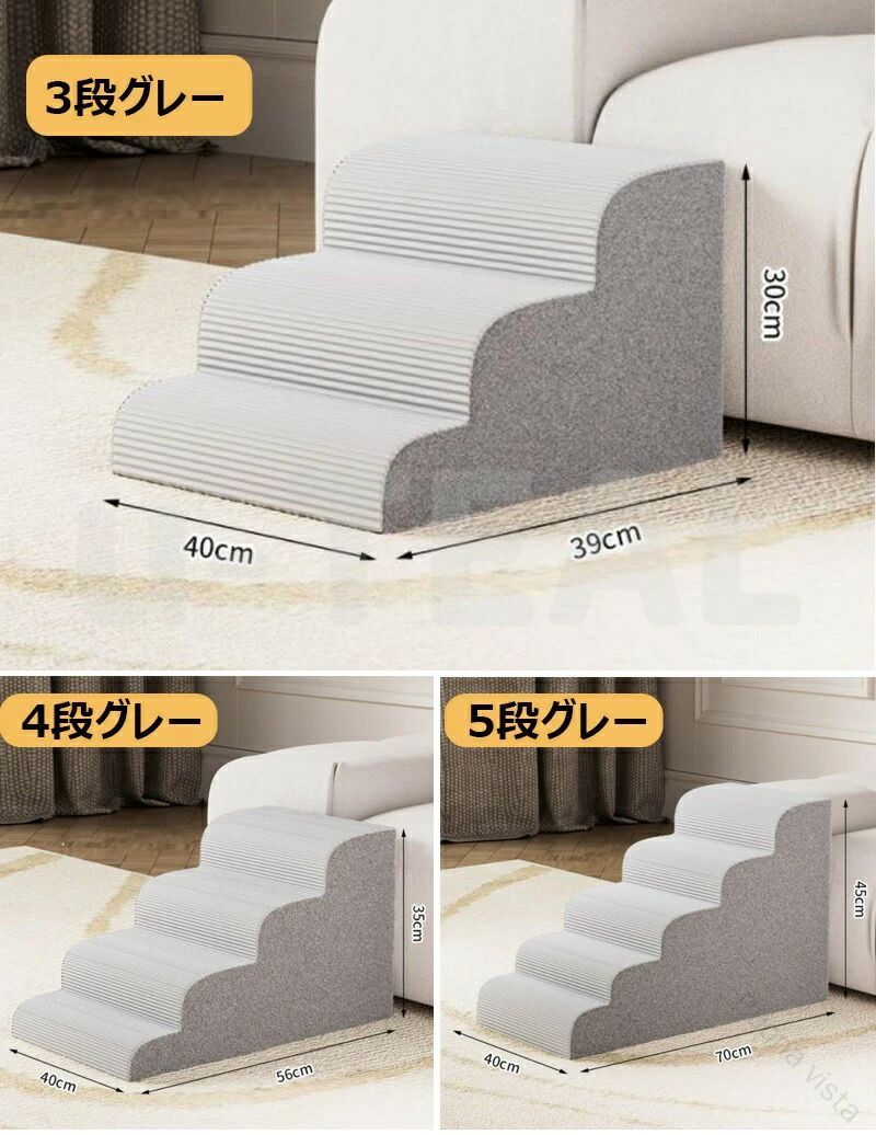 滑り止め付き ペット 愛犬 滑り止め 犬用品 介護用品 スロープ ステップ 人気 グレー イエロー×ブルー イエロー×グリーン 3段 4段 5段