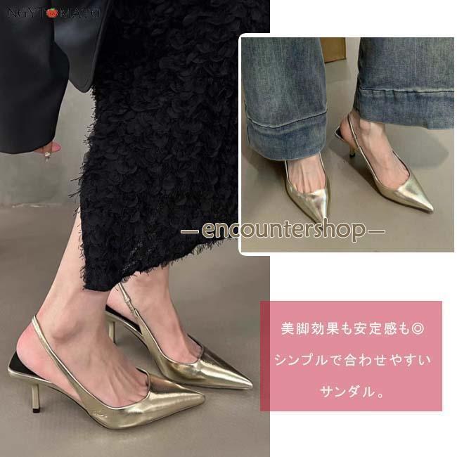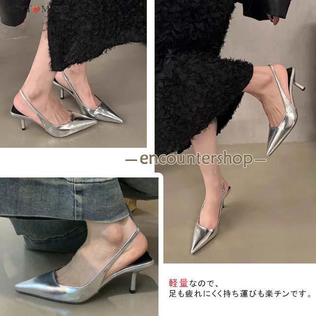 パンプス ポインテッドトゥ バックスト レディースファッション 特集 ブラック シルバー ゴールド FR35(22.5cm) FR36(23cm) FR37(23.5cm) FR38(24cm) FR39(24.5cm) FR40(25cm)