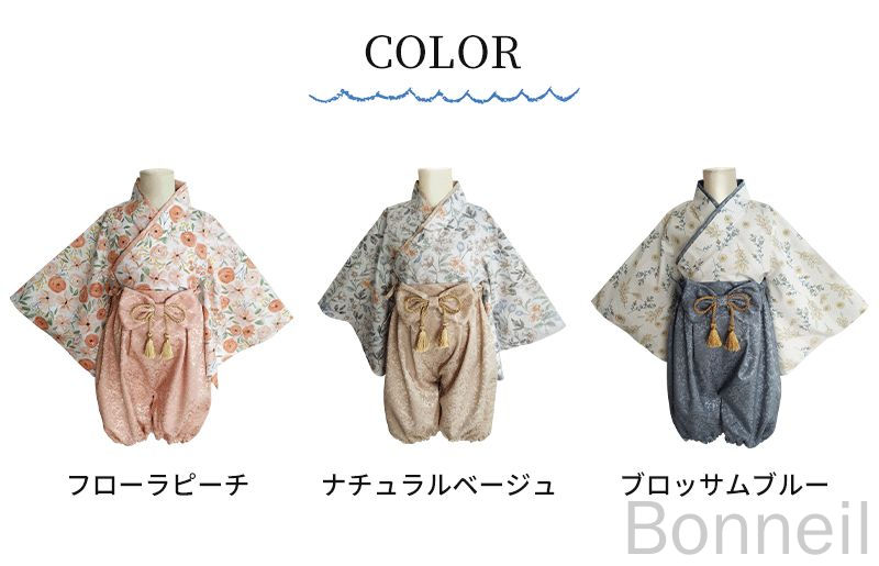 ベビー袴 2ピース セパレート 着物 キッズ ベビー マタニティ 早い者勝ち ブロッサムブルー ナチュラルベージュ フローラピーチ 70cm 80cm 90cm