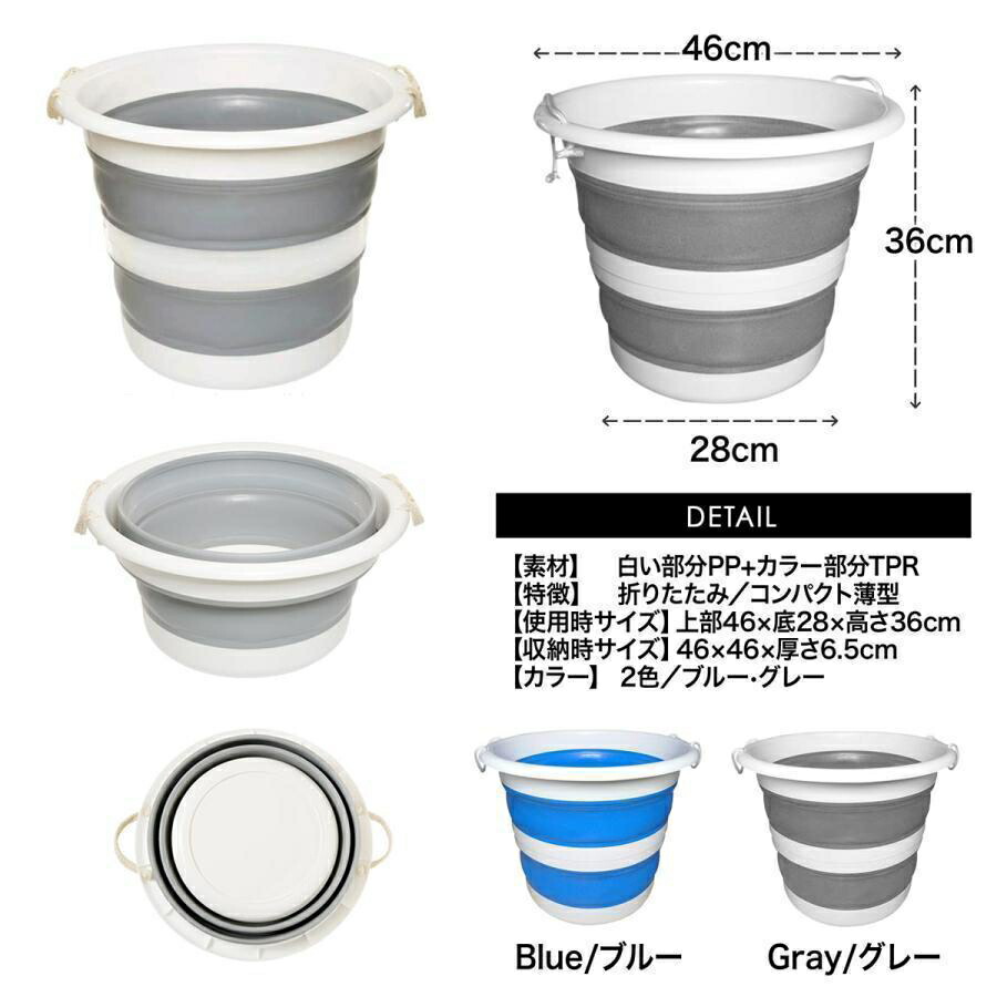 バケツ 折りたたみ式 30L 折り畳み 掃除用品 バケツ 新登場! ブルー グレー