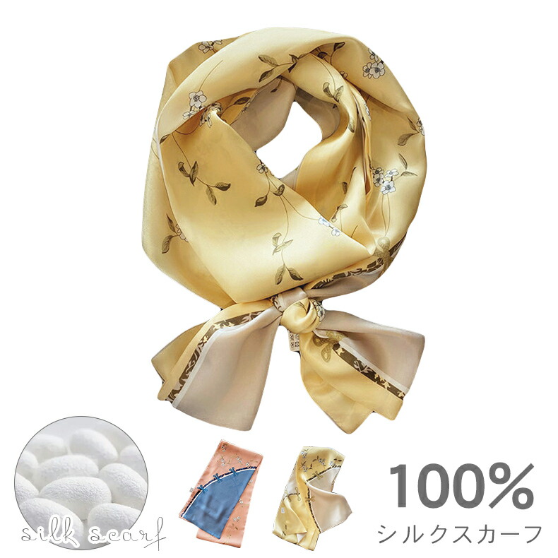 スカーフ シルク 100% 絹 天然素 バッグ 小物 ブランド雑貨 続々登場 イエロー ピンク