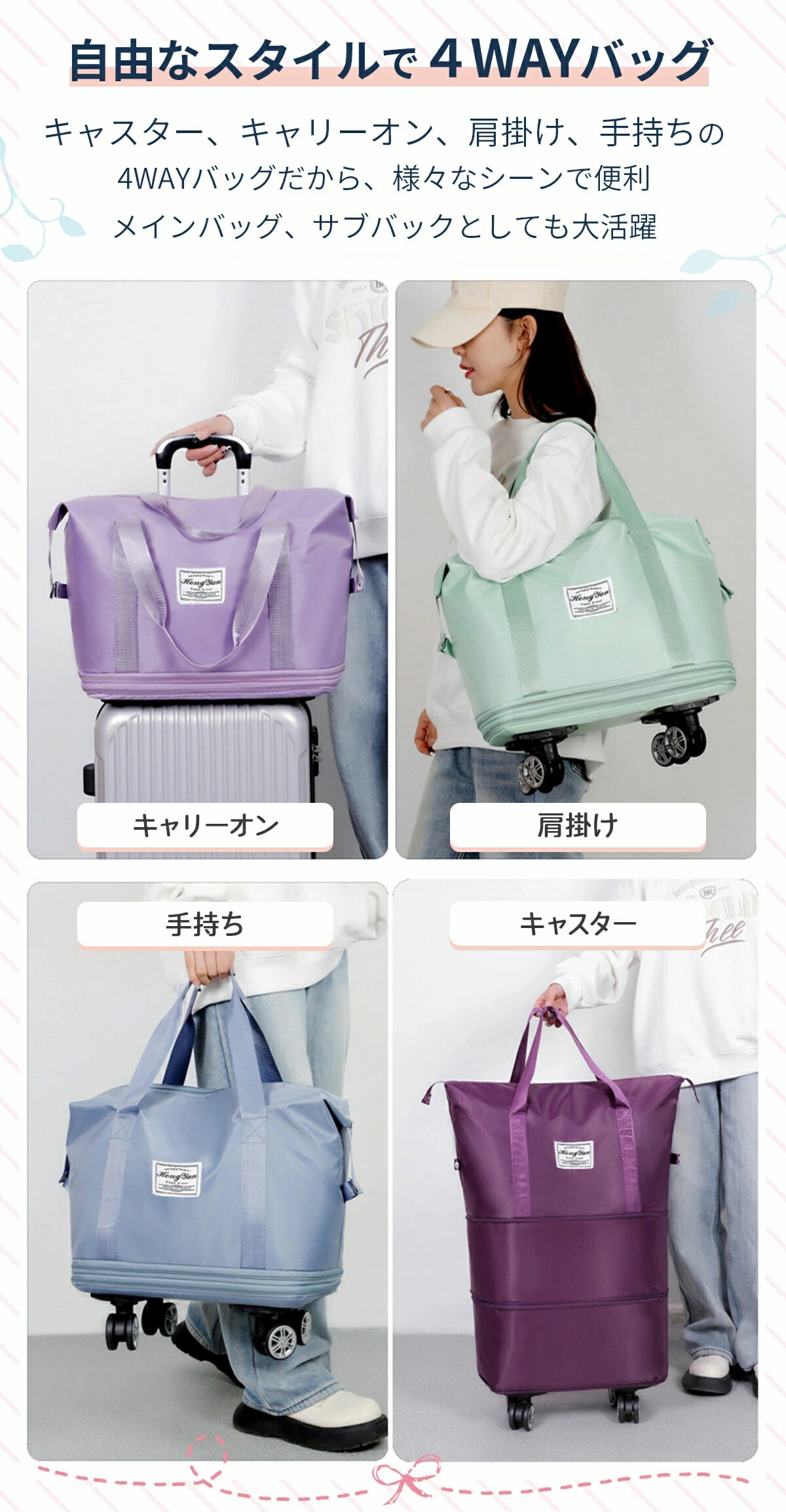 キャスター付きカバンボストンキャリーバッグ キャスター付き バック ボストンバッグ キャスター付きバッグ 旅行 レディース 大容量 折りたたみ おしゃれ メンズ 軽量 拡張 旅行バッグ スーツケース