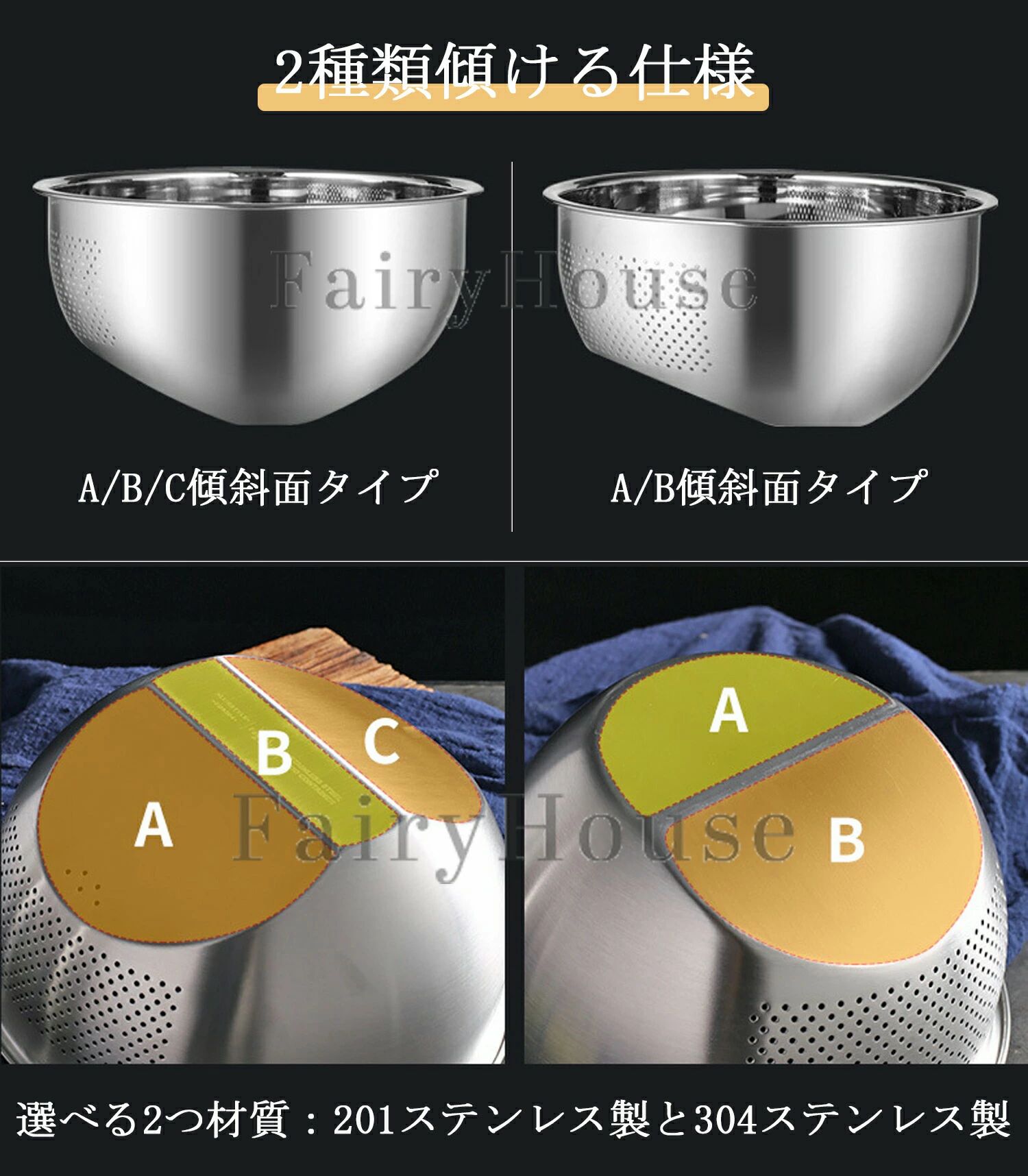 傾けるだけで水切り完了 こめとぎボウル キッチン用品 食器 調理器具 早い者勝ち 201【A/B傾斜面-19cm】 304【A/B傾斜面-19cm】 201【A/B傾斜面-22.5cm】 304【A/B傾斜面-22.5cm】 201【A/B/C傾斜面-26cm】 304【A/B/C傾斜面-26cm】