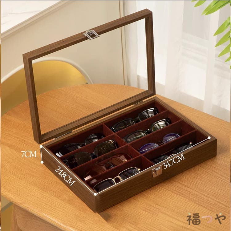 眼鏡ケース 収納 収納ケース メガネ ジュエス ガラス天窓 メガネケース サングラス 蓋付き おしゃれ クリア蓋 木製 コレクション