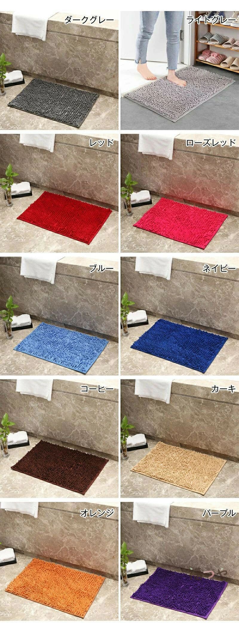 バスマット 大判 60×90cm 吸水 バス用品 バスマット 豊富 ライトグレー レッド ローズレッド ブルー ネイビー コーヒー カーキ オレンジ パープル