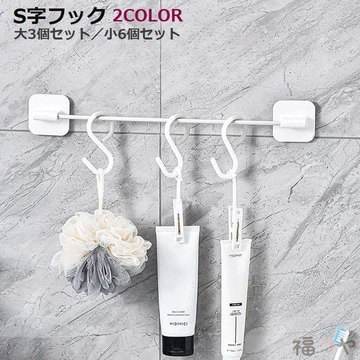 S字フック 3個セット 6個セット 収 ブラック ホワイト 大3個セット 小6個セット