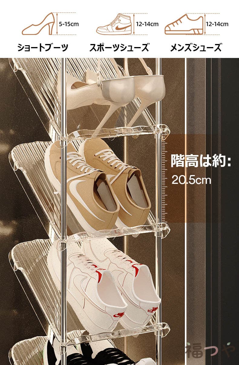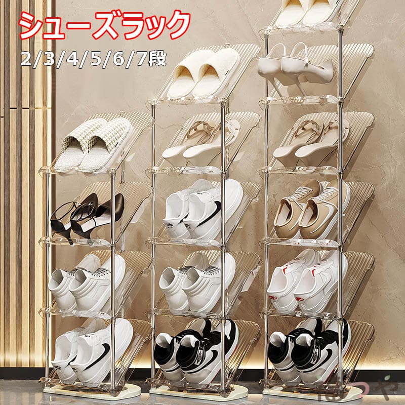 シューズラック スリム コンパクト 省 透明 グレー 2段 3段 4段 5段 6段 7段