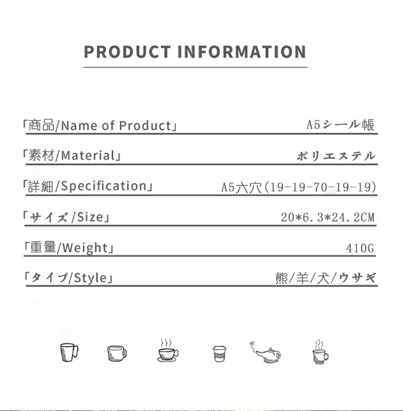 シール帳 バインダー A5サイズ 超可 日用品雑貨 文房具 手芸 新作 熊 ウサギ 犬 羊 虹 星 花 心 蝶 犬 透明1 透明2