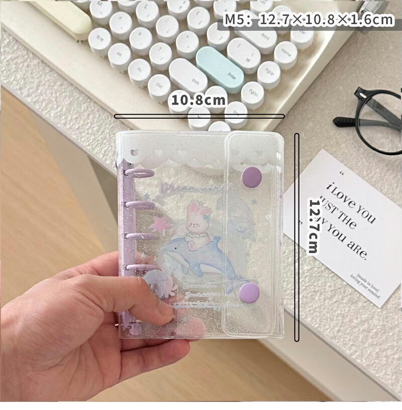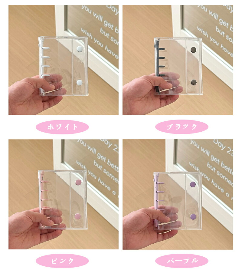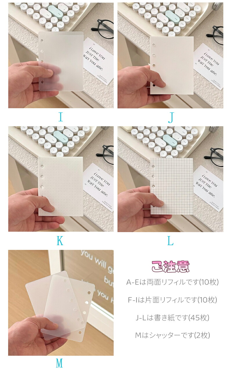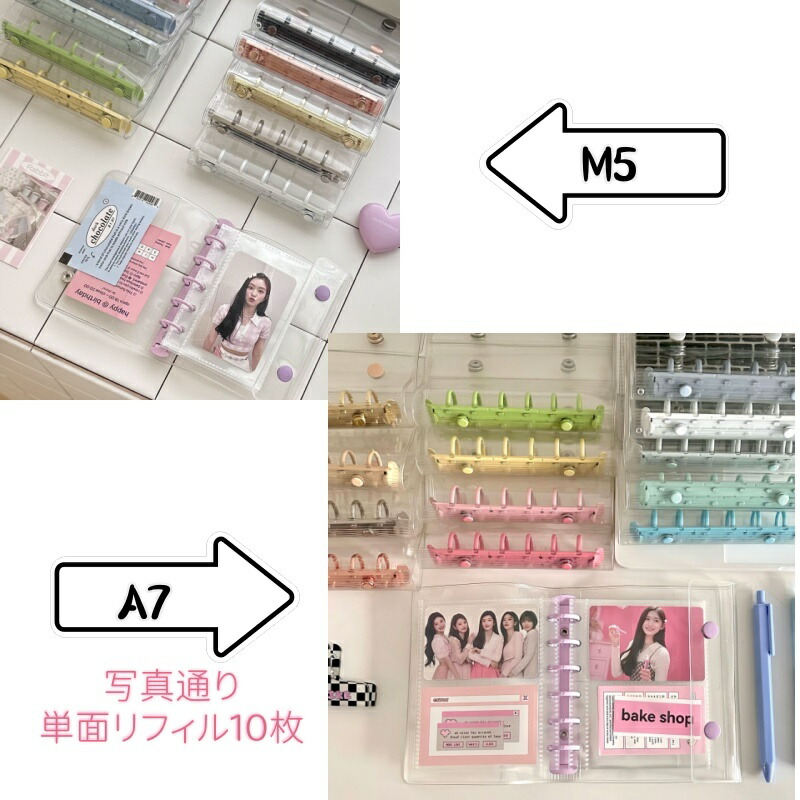 シール帳 M5 A7サイズ 透明 バイ 文房具 事務用品 手帳 ノート システム手帳 早い者勝ち ホワイト ブラック ピンク パープル ブルー ライトブルー シルバー イエロー ゴールド ローズゴールド A B C D E F G H I J K L M リフィルなし A7サイズ(リフィルなし) A7サイズ(写真通りリフィル10枚)