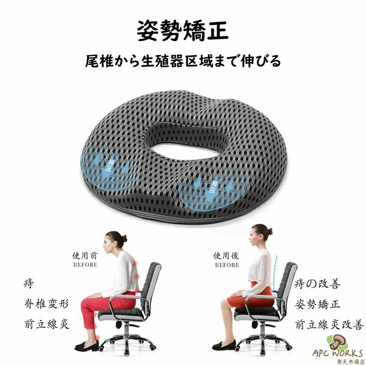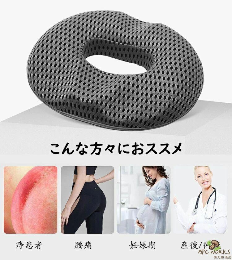 円座 低反発 丸型 座布団 チェア 椅子 人間工学設計 健康 腰痛対策 産後 痔 坐骨神経痛 姿勢 骨盤 美尻 ドーナツ型 オフィス 車用 出産 妊婦 ギフト 通勤 母の日 マタニティ