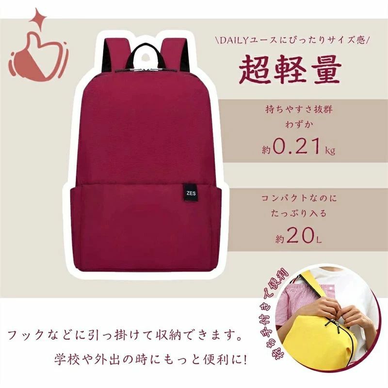 軽く感じる ファッション リュック 防 ワインレッド ブラック ダークグリーン イエロー ネイビー