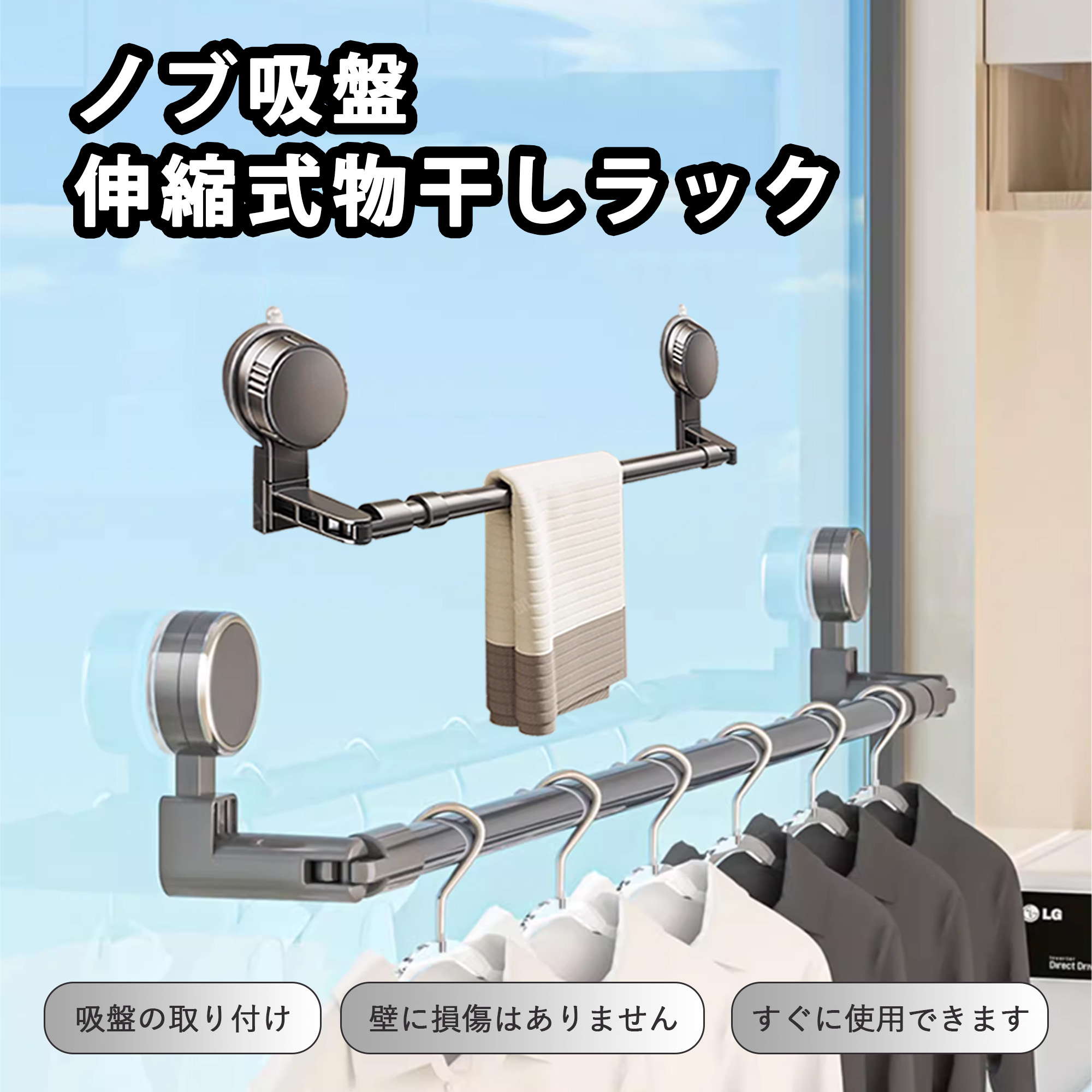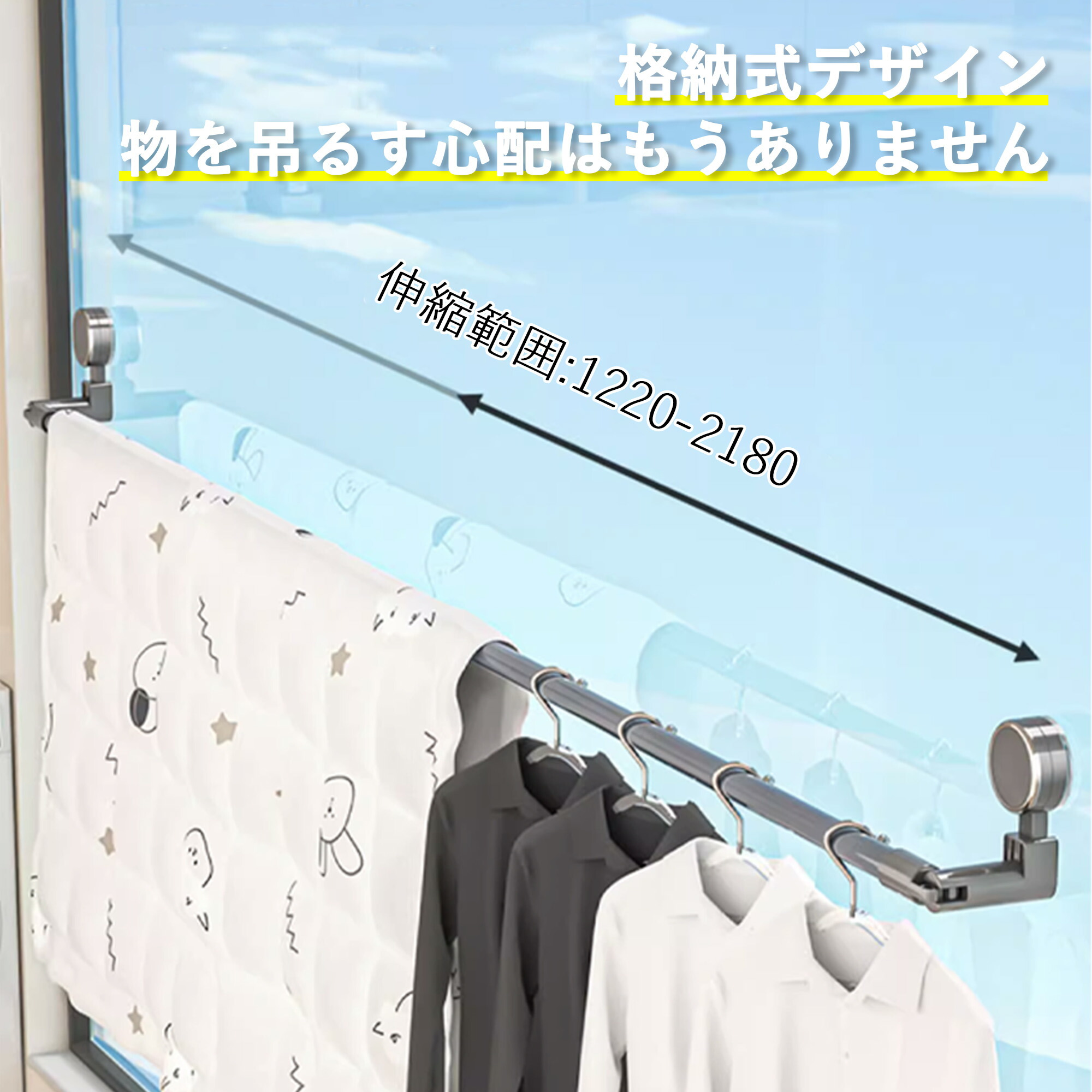 吸盤式 伸縮 窓用 物干し竿 ベランダ 室内干し 洗濯ハンガー 取り付け不要 折りたたみ 洗濯物干し 賃貸対応 コンパクト収納