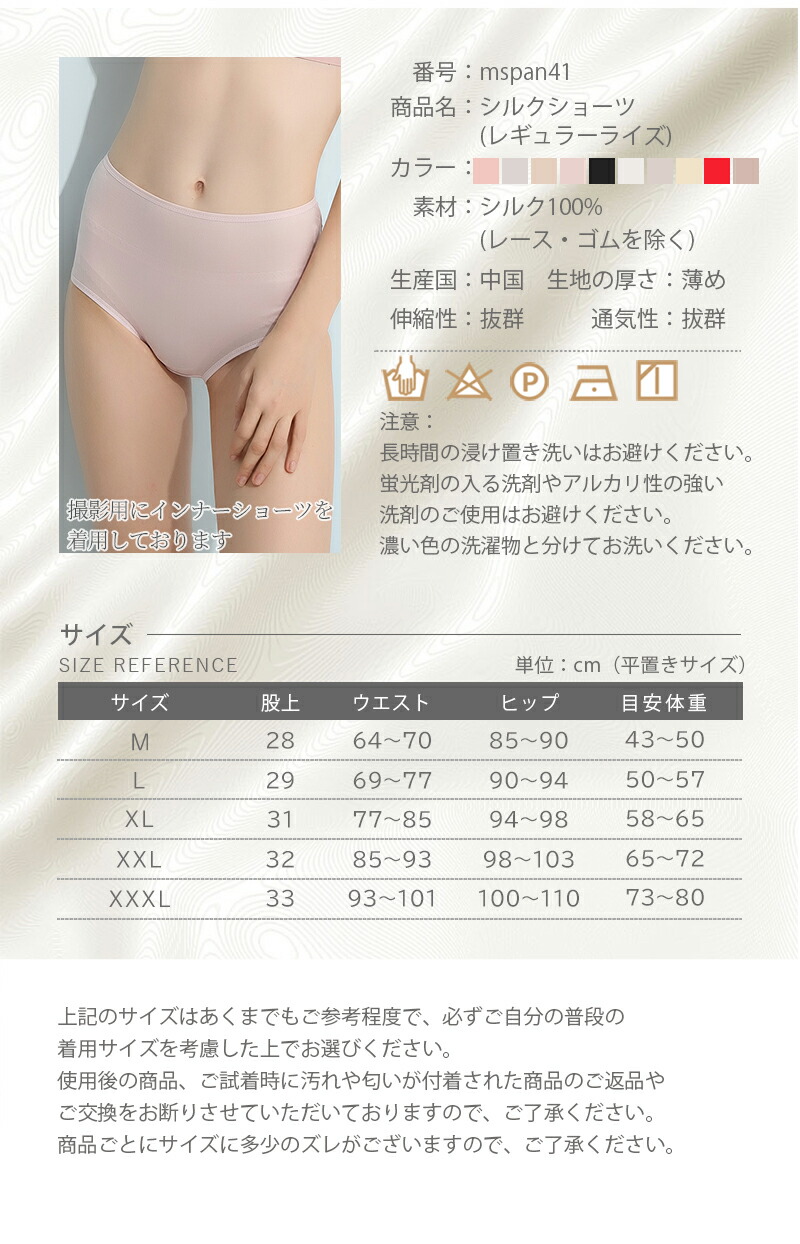 シルクショーツレディースパンティは、お肌に優しいシルク素材を使用しており、吸湿性、保湿性、放温性に優れています。