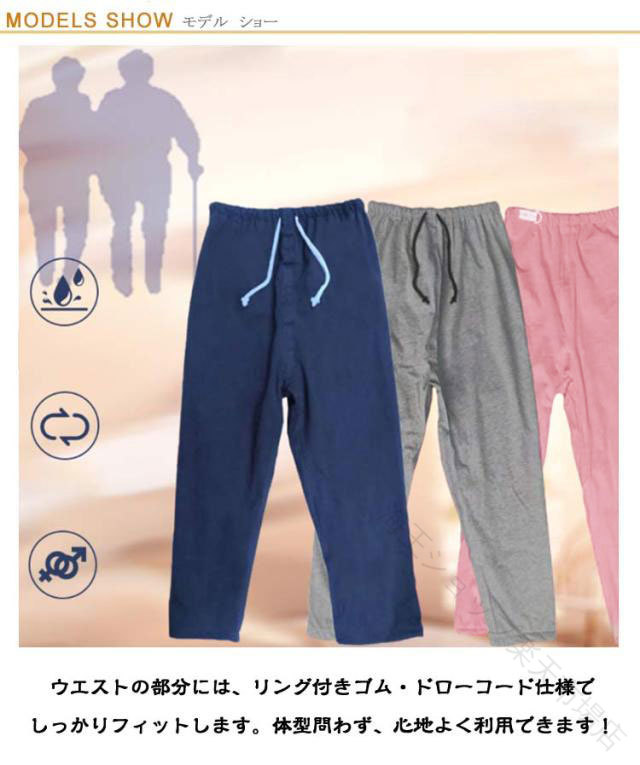 介護 ズボン 大人 男女兼用 おねしょ ネイビー ブルー グレー ピンク M(ウエスト紐) M(ウエストゴム) L(ウエスト紐) L(ウエストゴム) XL(ウエスト紐) XL(ウエストゴム)