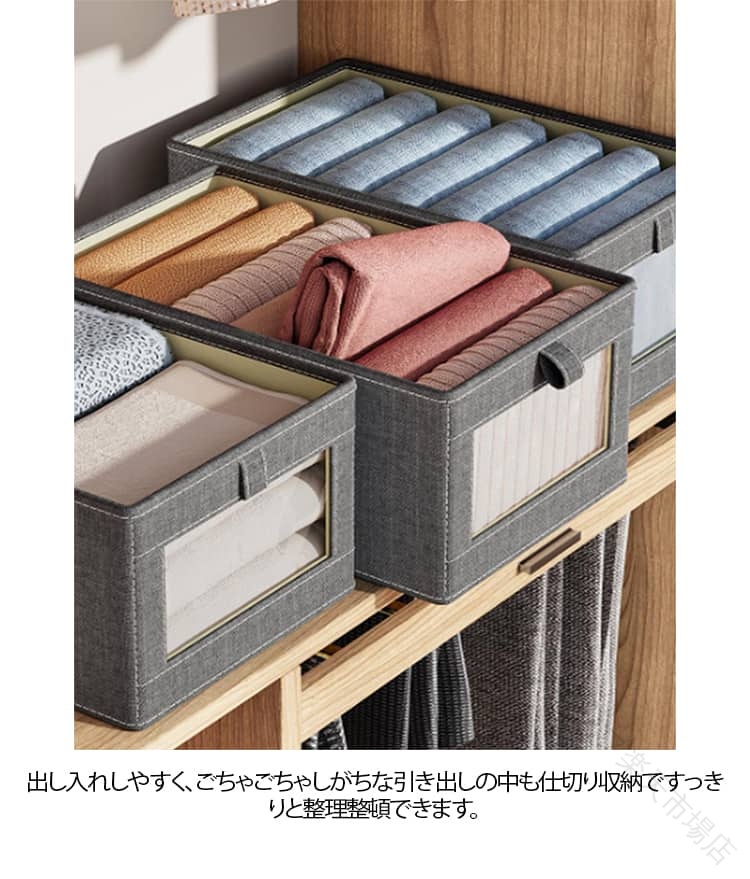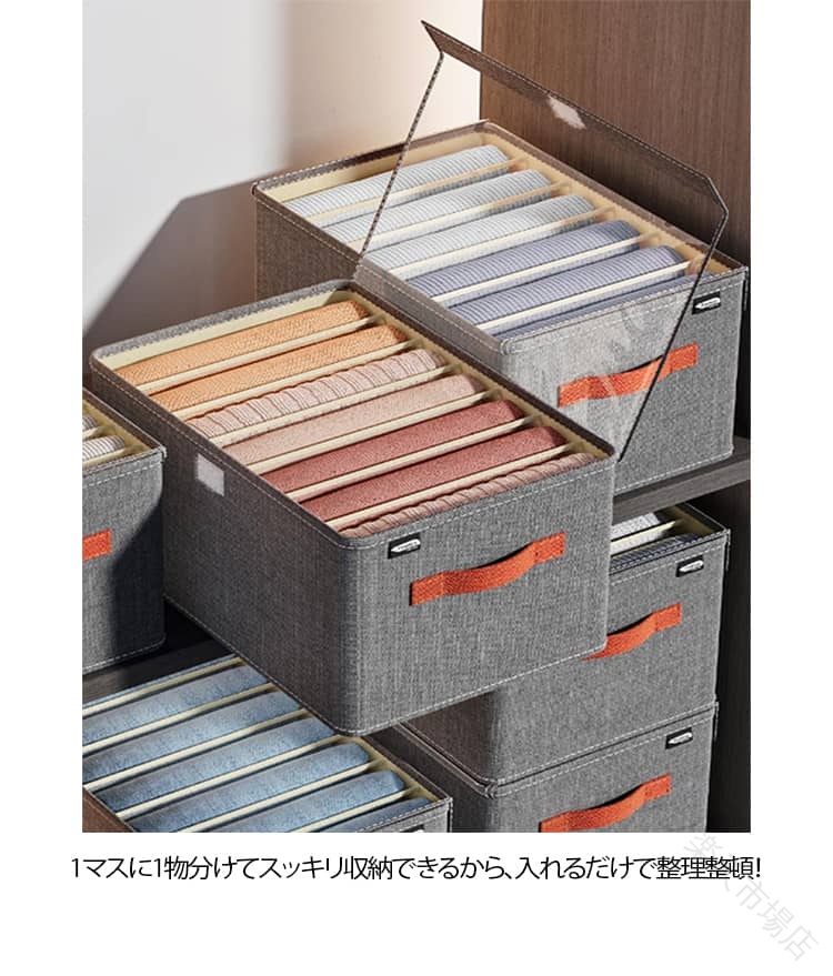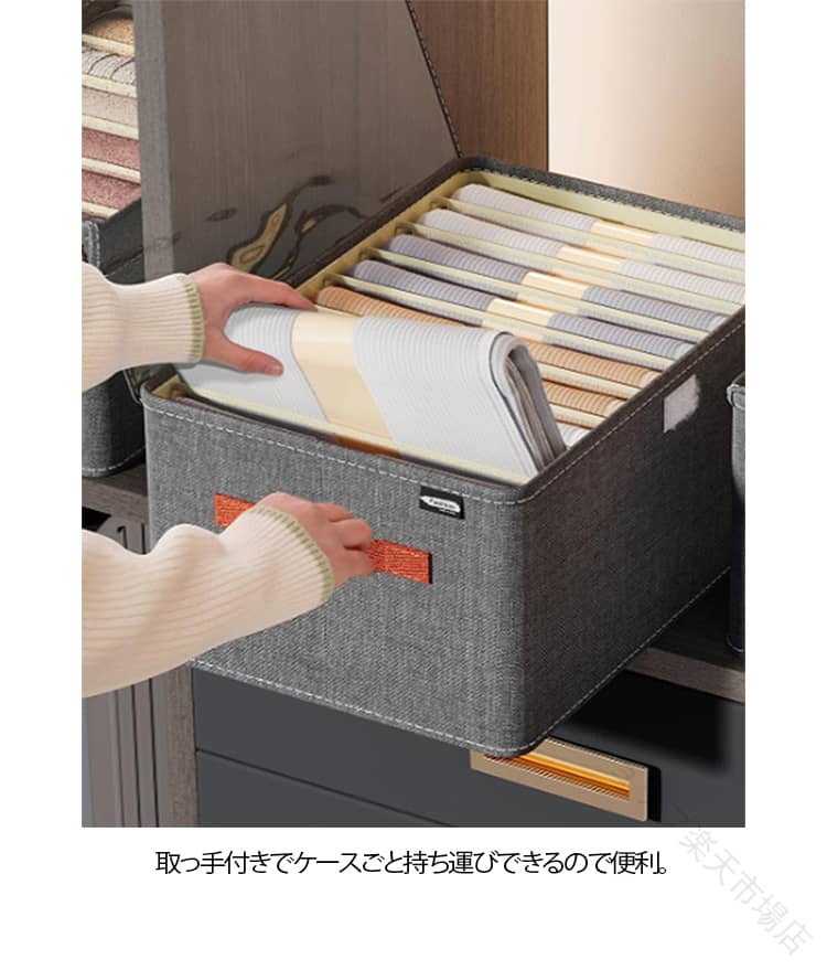 PP板内蔵で型崩れせず変形しにくい、積み重ねて収納可能。1マスに1物分けてスッキリ収納できるから、入れるだけで整理整頓!出し入れしやすく、ごちゃごちゃしがちな引き出しの中も仕切り収納ですっきりと整理整頓できます。丈夫で耐久性あり、丈夫な材質を使用しているため、形は崩れにくく、重さに耐えられ、重ねられます。複数の収納ボックスを重ねてスペースを有効活用できます。取っ手付きでケースごと持ち運びできるので便利。セーター、パーカー、ズボン、Tシャツ、カットソーなど厚手の服から薄手服まで綺麗にスッキリ収納。丈夫なオックスフォード生地、長年使用してもボロボロにならず、汚れた場合、水洗いできます。