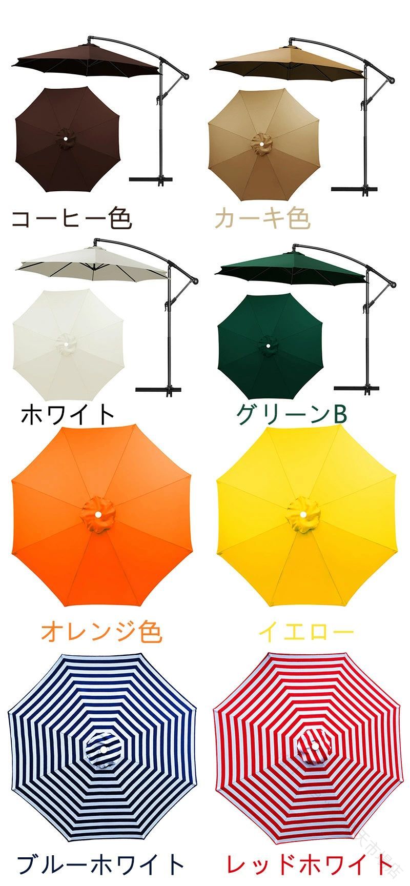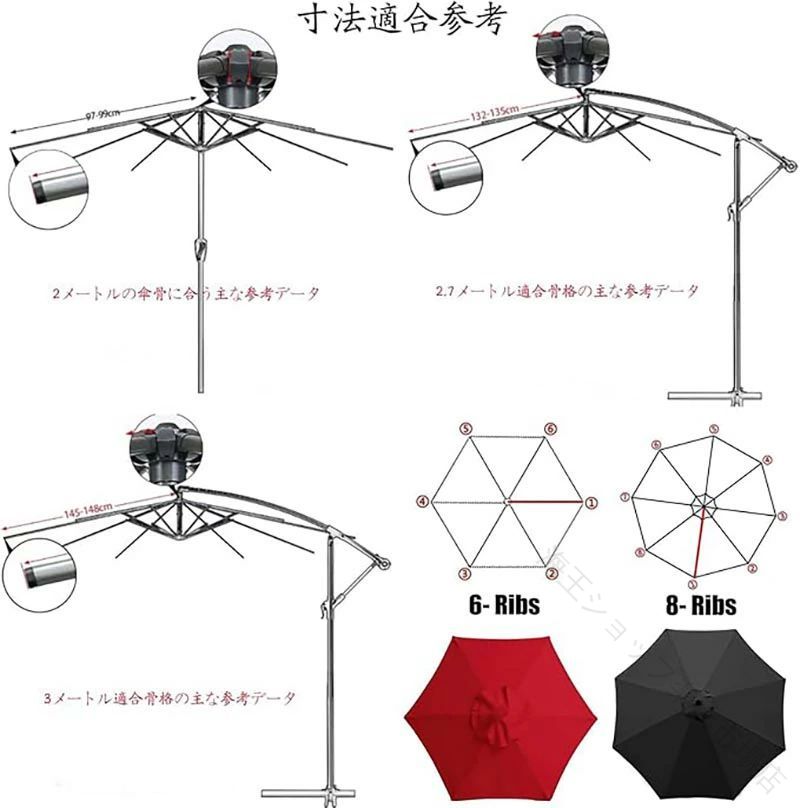 ガーデンパラソル 替え布 パラソル傘布 ブラック レッド ホワイト グリーン グリーンB カーキ色 コーヒー色 ネイビーブルー レッドB グレー ブルーB ブルー イエロー オレンジ色 レッドホワイト ブルーホワイト 2M/6本傘の骨 2.3M/8本傘の骨 2.5M/6本傘の骨 2.7M/6本傘の骨 2.7M/8本傘の骨 3M/6本傘の骨 3M/8本傘の骨