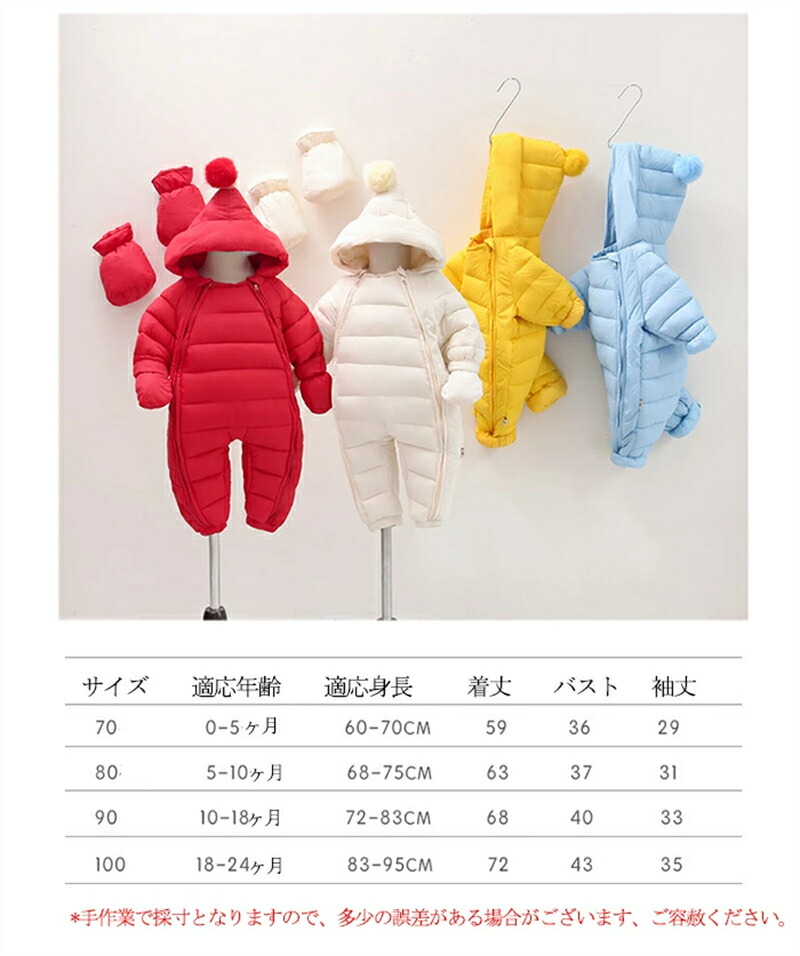 ジャンプスーツ ベビー 雪遊び フード キッズ ベビー マタニティ 特集 ネイビー イエロー グリーン ベージュ オレンジ レッド パープル 73CM 80CM 90CM 100CM