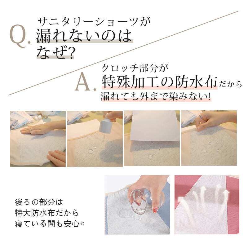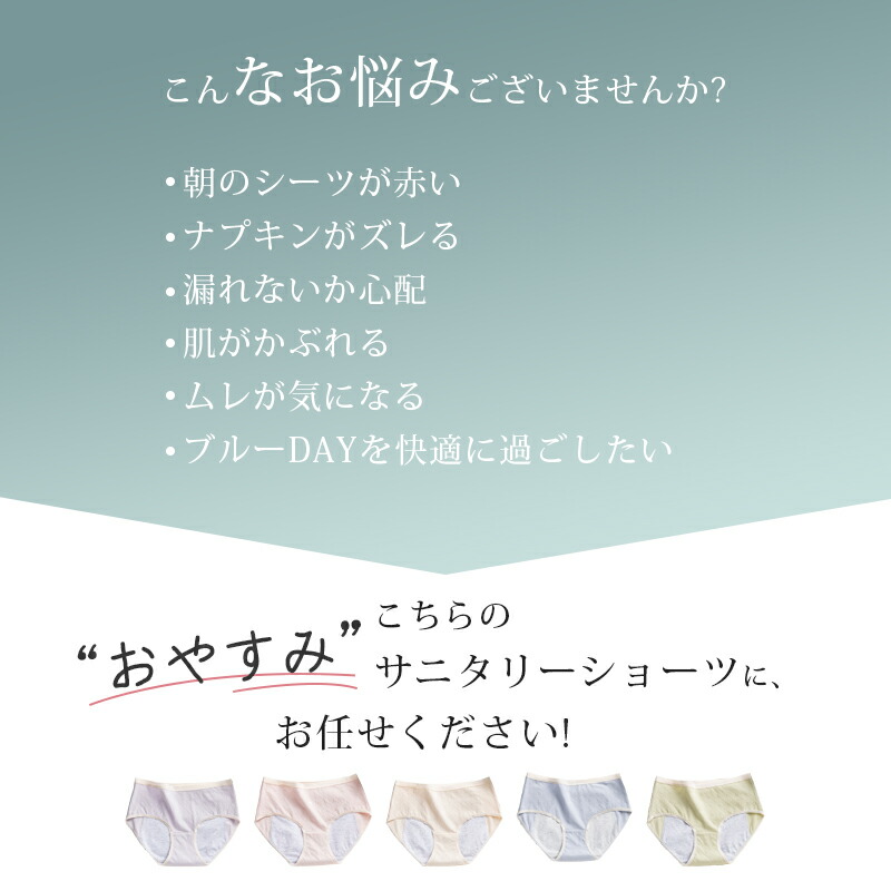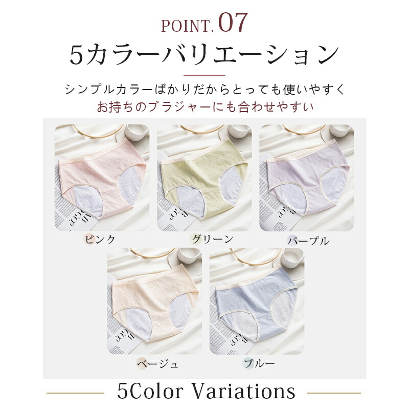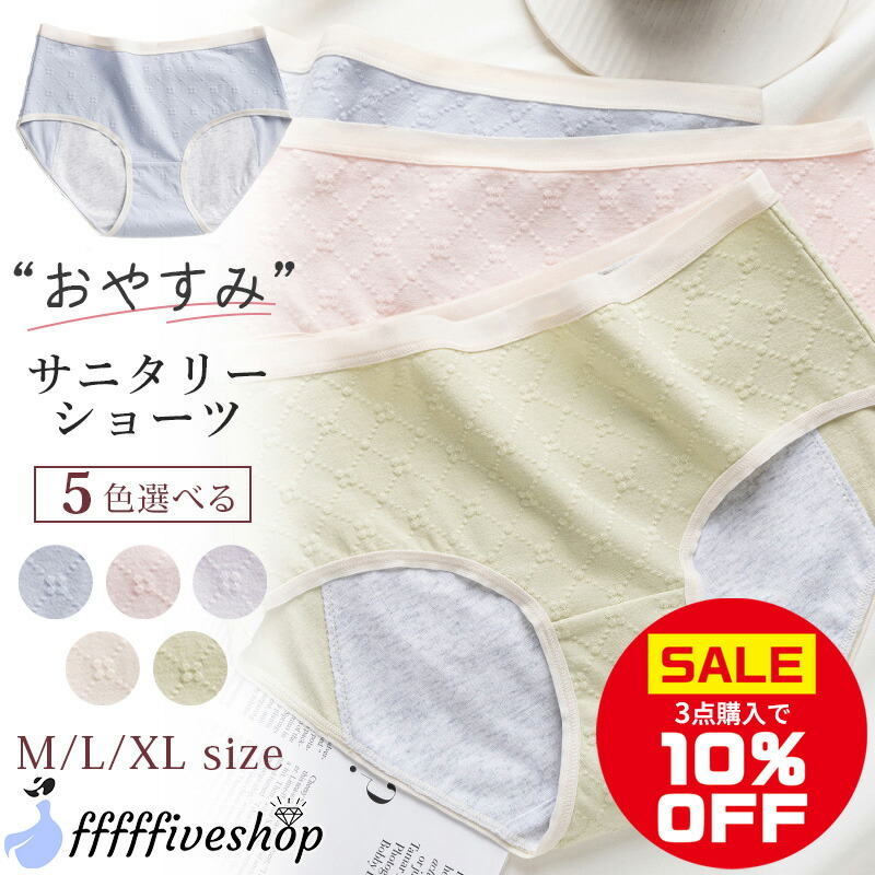 生理用ショーツ ショーツ 生理 女性用 インナー 下着 ナイトウエア 通販 ブルー パープル グリーン ピンク ベージュ M L XL