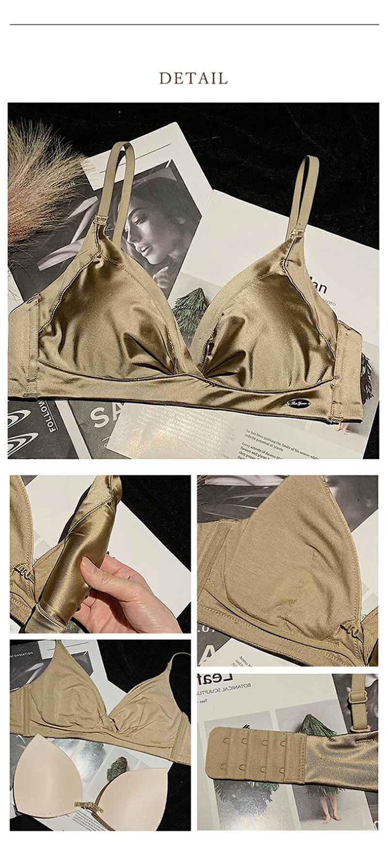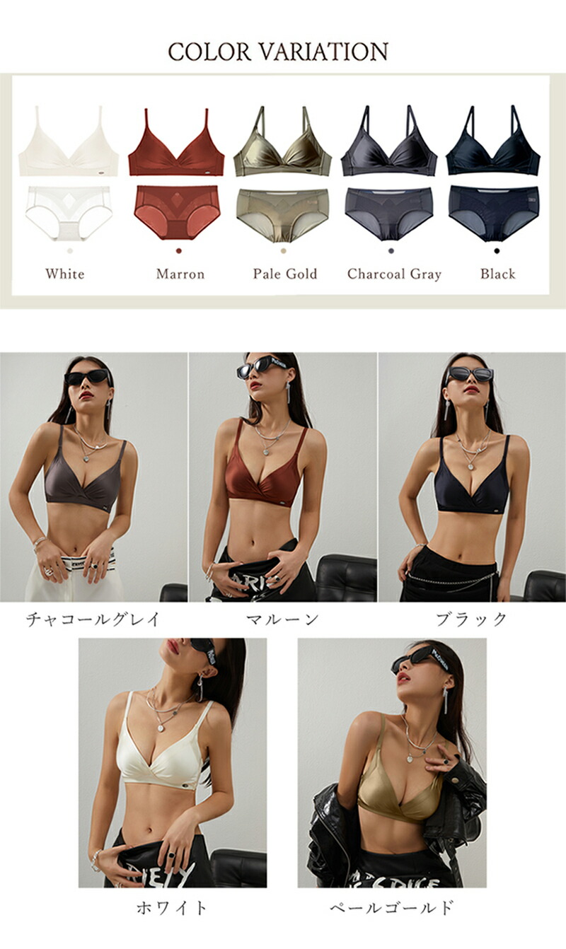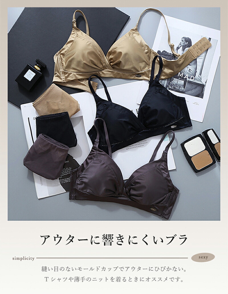 ブラ シームレス 下着 サテン ブラレ インナー 下着 ナイトウエア 豊富 ブラック チャコールグレイ ペールゴールド ホワイト マルーン (S)32/70 (M)34/75 (L)36/80 (XL)38/85