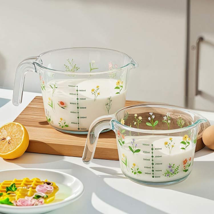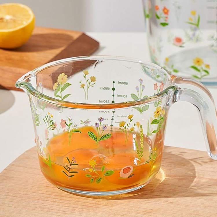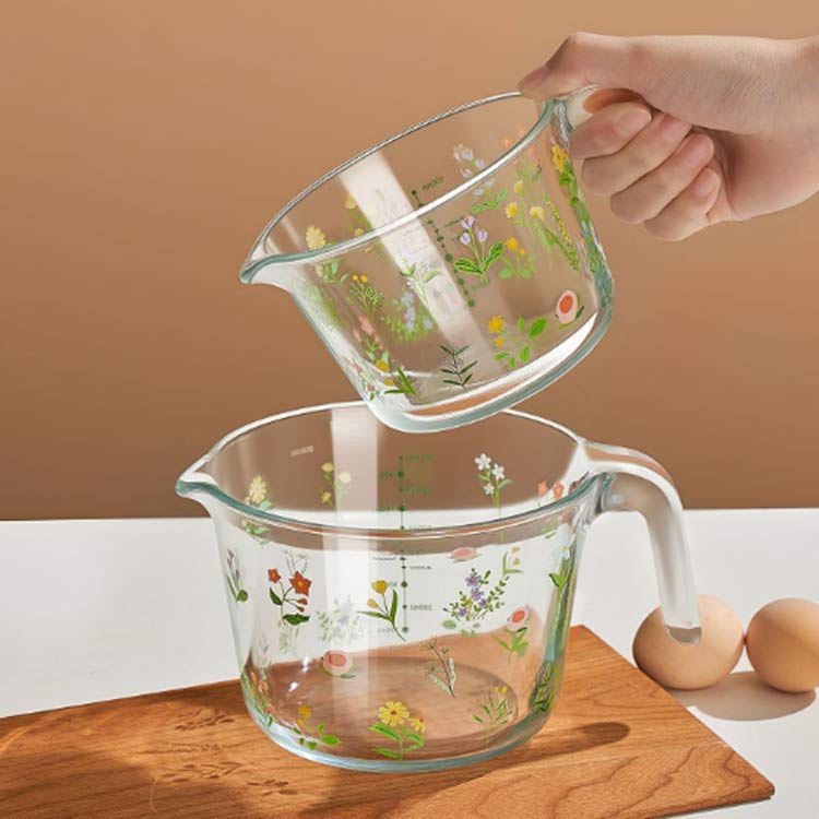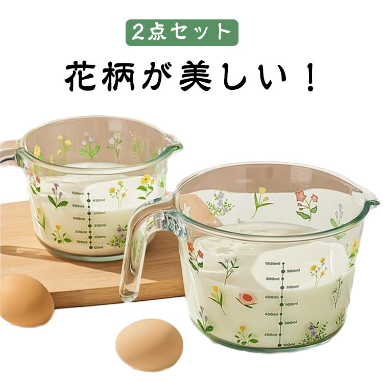 美しい花柄 耐熱ガラス 耐熱メジャーカ 調理 製菓道具 計量 タイマー 温度計 計量カップ 早い者勝ち