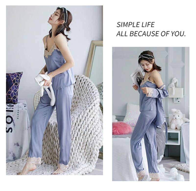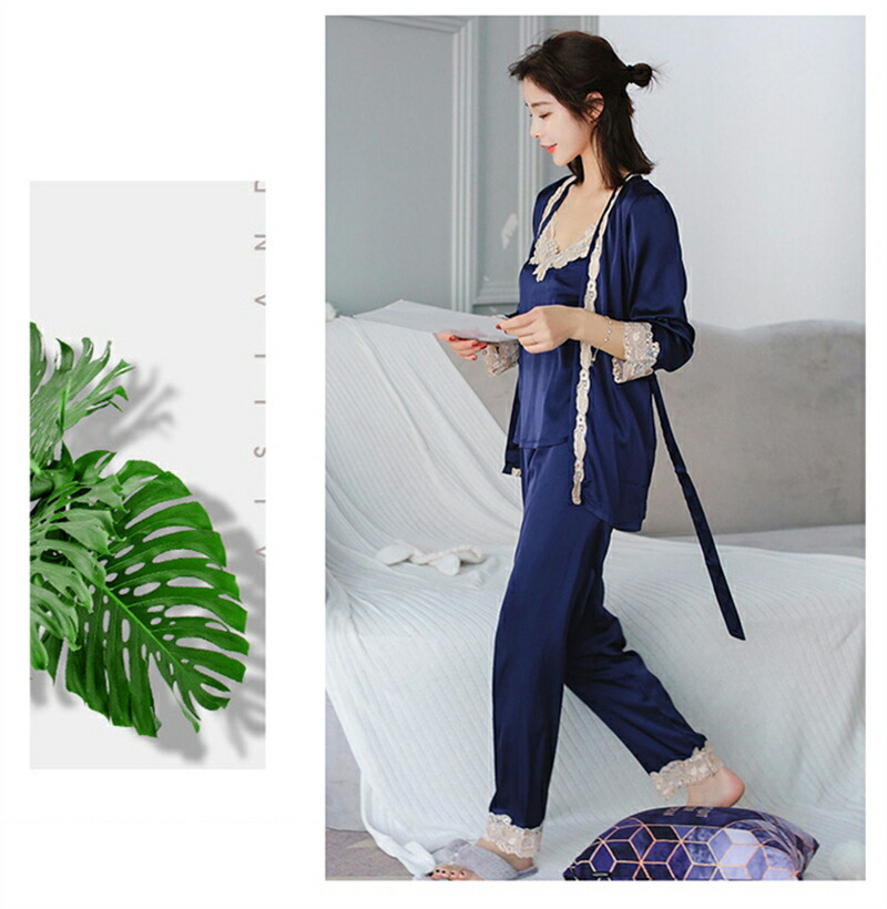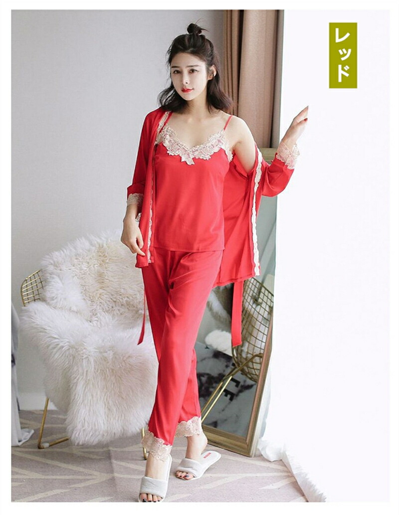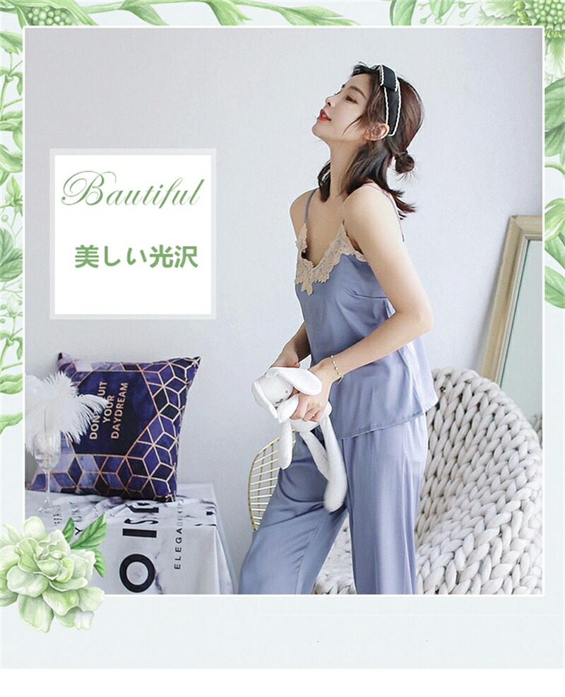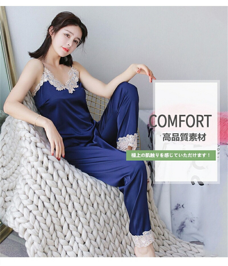 高品質 ルームウェア セクシー シルク レディース ナイトウェア ルームウェア ルームウェア 上下セット 人気 ブルー ネイビー レッド ホワイト M L XL
