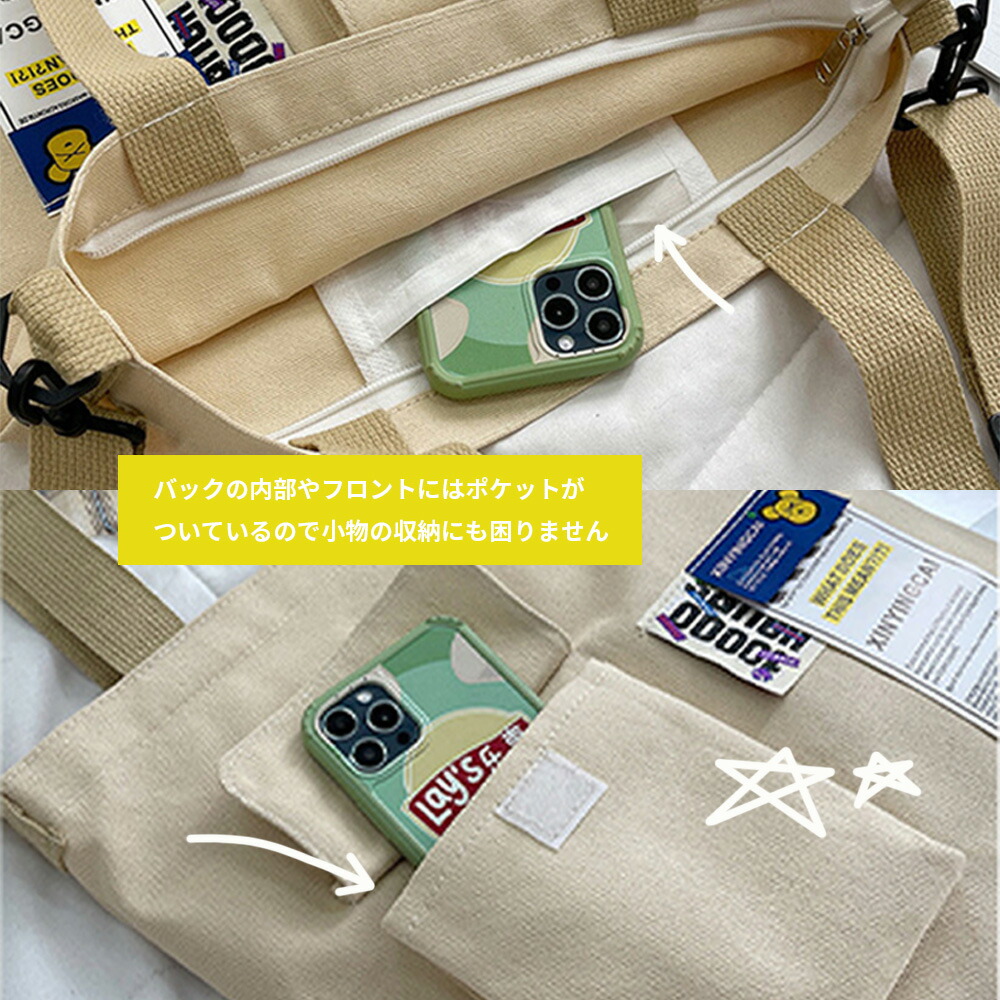 2WAY ショルダーバッグ キャンバス バッグ 小物 ブランド雑貨 豊富 ブラック ホワイト ベージュ