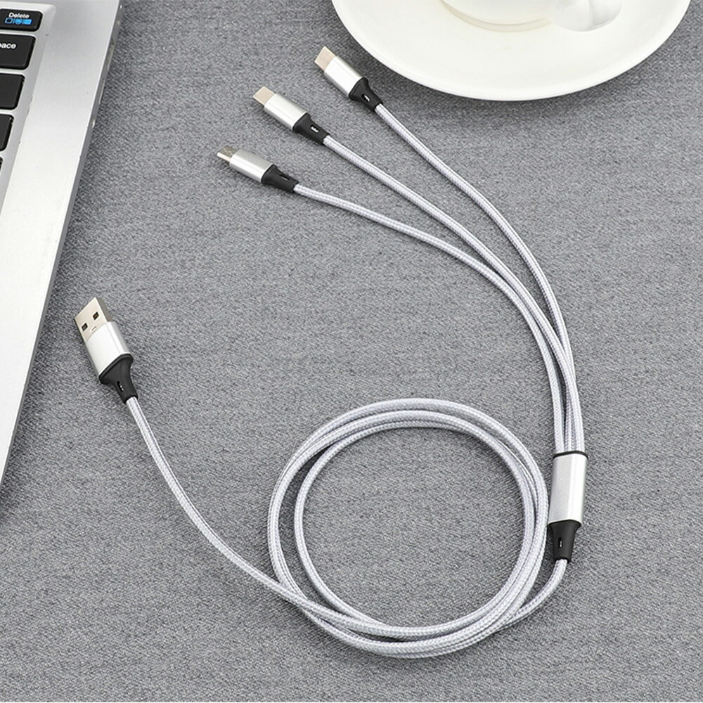 3in1 マルチ充電ケーブル |USB-A to USB-C Micro USB Lightning 同時充電 3台同時対応 自動電流制御 安定充電 断線防止 合金コネクタ ス 高耐久ナイロン編み込み
