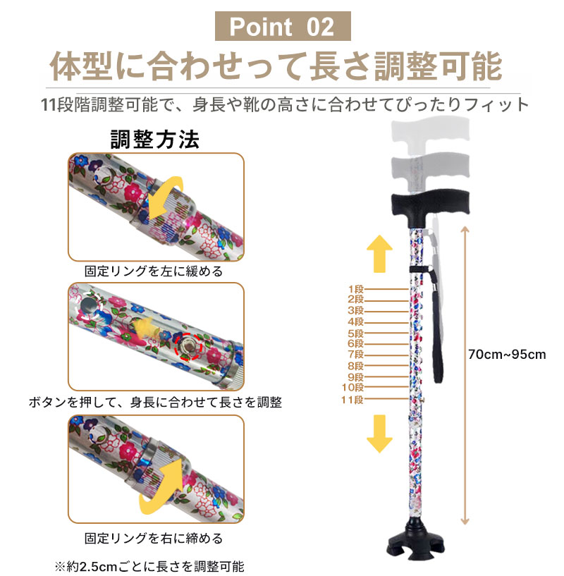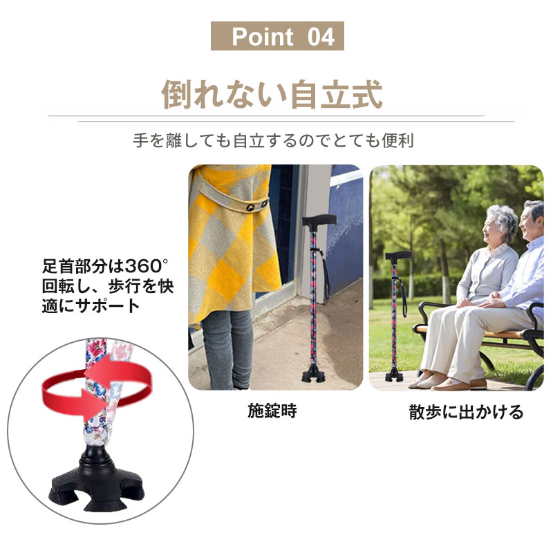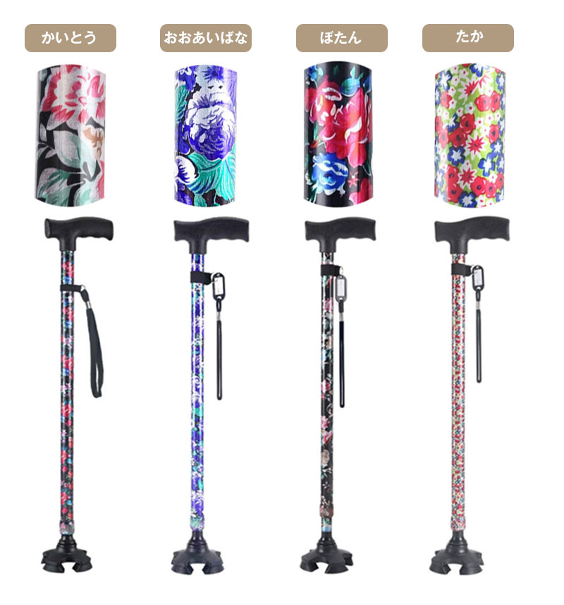 杖 4点杖 ステッキ 自立式 軽量 伸 むらさきばな おうか たけかげ かいとう ぼたん おおあいばな たか やえんか