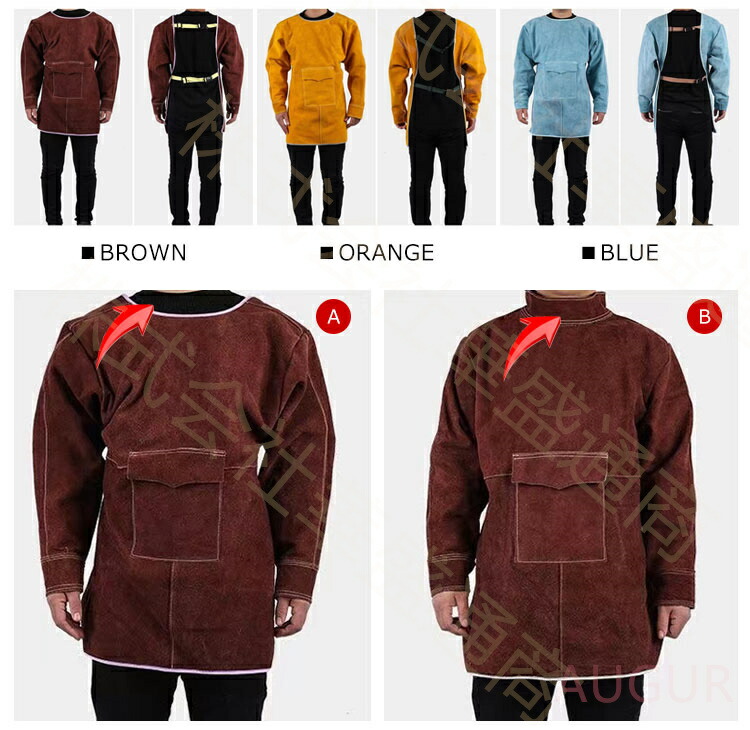 溶接 エプロン 牛革 作業 溶接用 電 作業服 エプロン 豊富 BROWN ORANGE BLUE 85CM 105CM 120CM