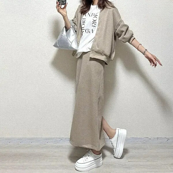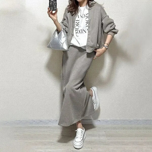 2点セット レディース アウター&ロン スーツ セットアップ スカートスーツ 豊富 グレー ブラック べジュー S M L