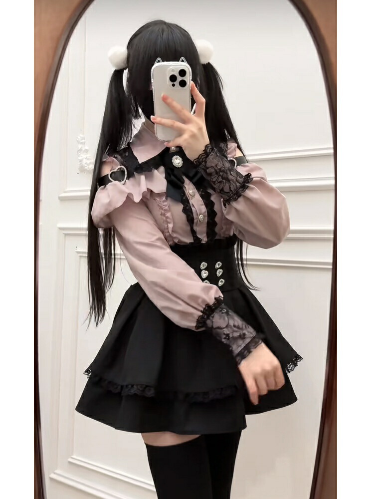 地雷系 オープンショルダー ワンピース レディースファッション 超目玉商品 ブルー ピンク ブラック ワインレッド S M L XL
