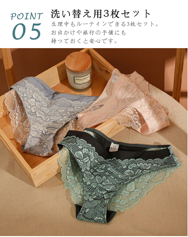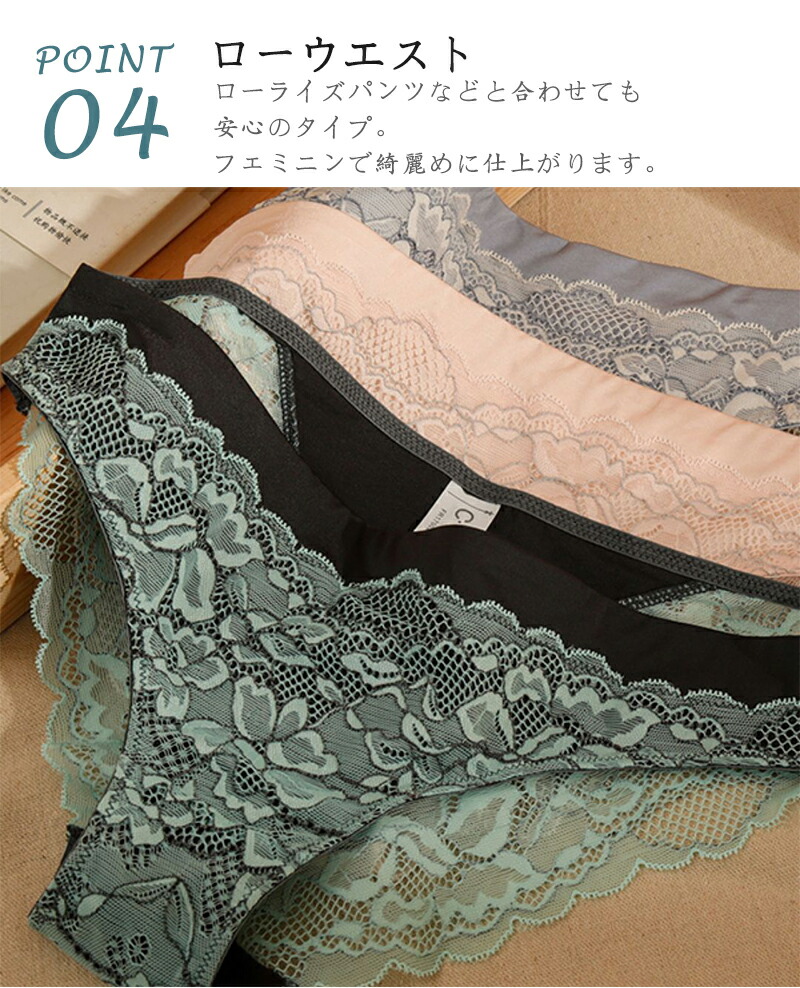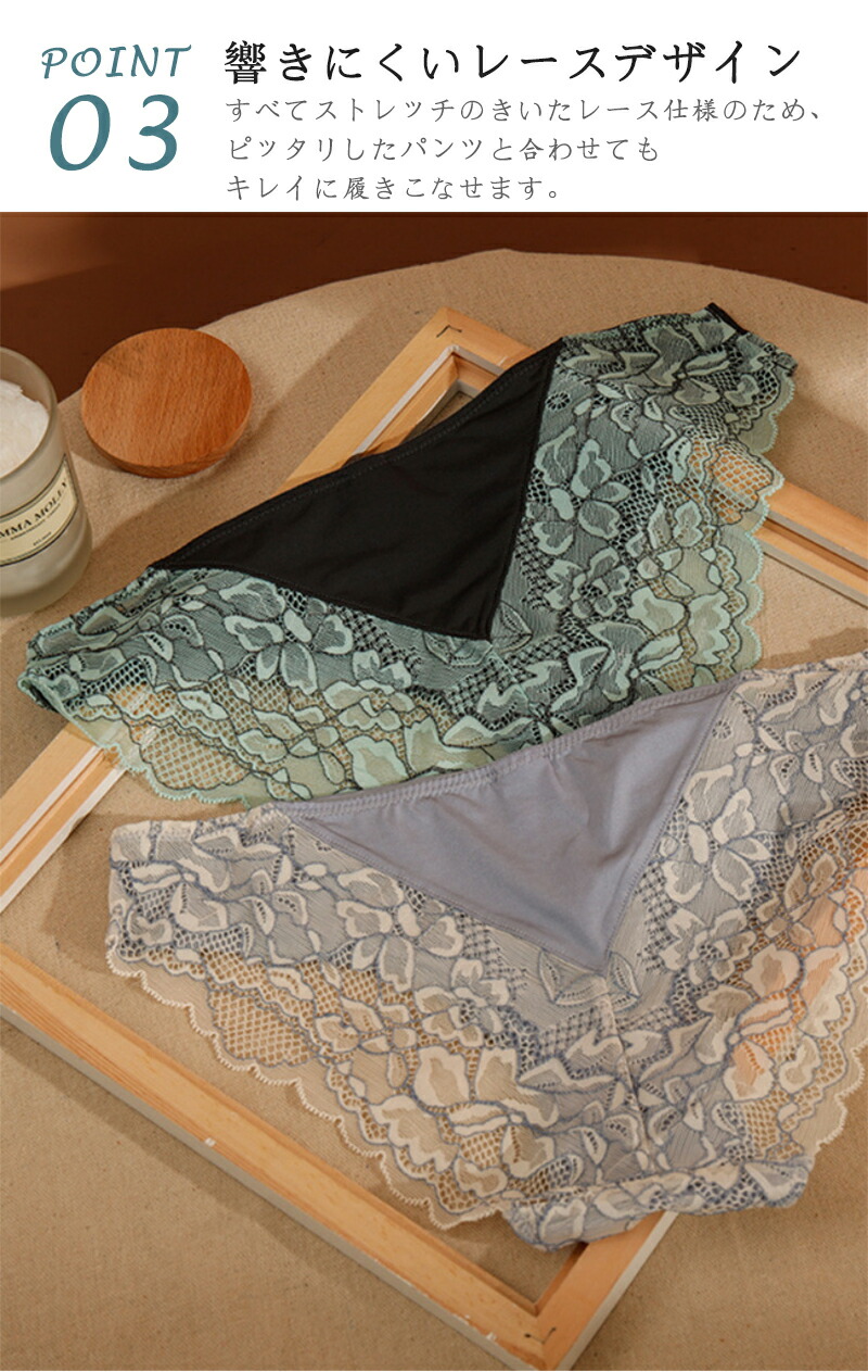 ヒップハング レースショーツ 綿 速乾 インナー 下着 ナイトウエア 通販 パープル*3枚 グレー*3枚 ピンク*3枚 パープル+グレー+ピンク M L