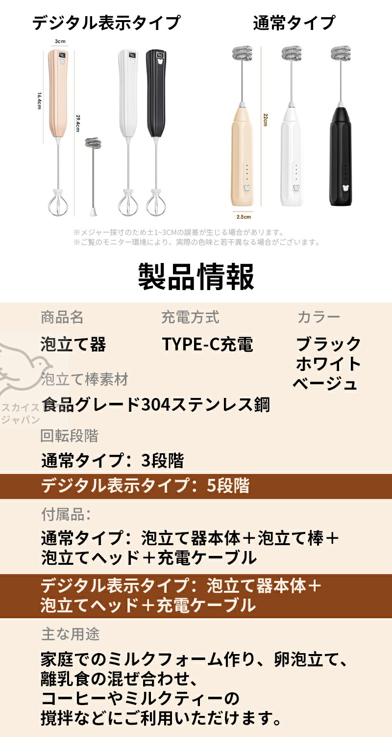 泡立て器 電動 ミルクフォーマー ミニ 調理 製菓道具 調理器具 泡だて器 続々登場 通常タイプ デジタル表示タイプ ブラック ホワイト ベージュ