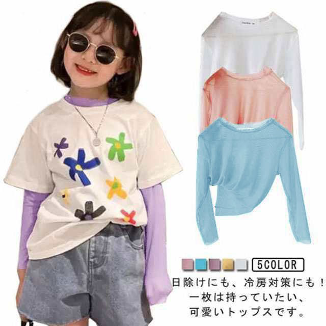 接触冷感 透け感 長袖 プルオーバー キッズ ベビー マタニティ 新登場! ホワイト グリーン パープル ブルー ピンク 90 100 110 120 130 140 150 160