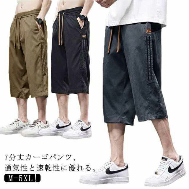 カーゴパンツ 7分丈 ひざ下 ショート アウトドア ウェア メンズウェア ハーフパンツ ショートパンツ 人気 ブラック グレー カーキ M L XL 2XL 3XL 4XL 5XL