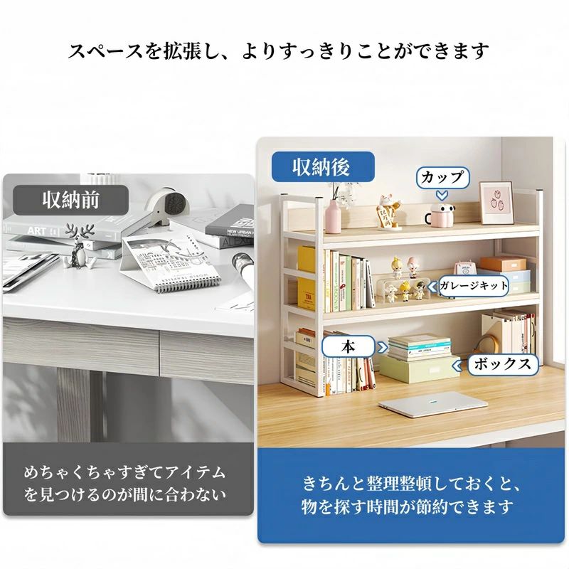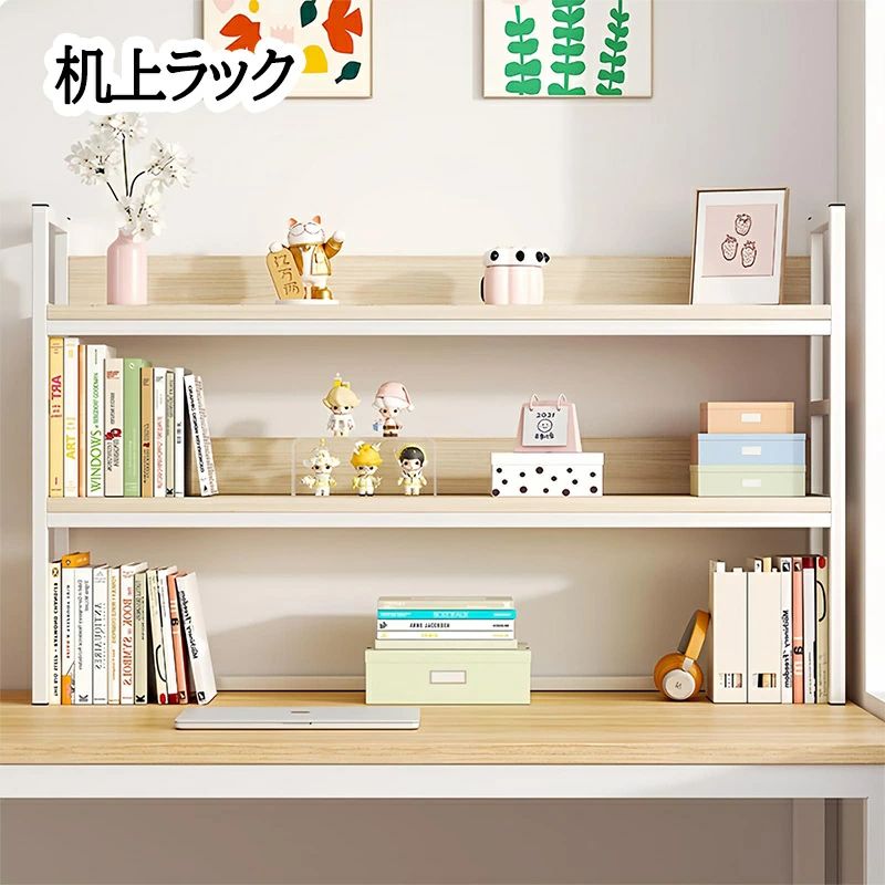 机上ラック デスク棚 卓上ラック デス ホワイト 木色 ブラック