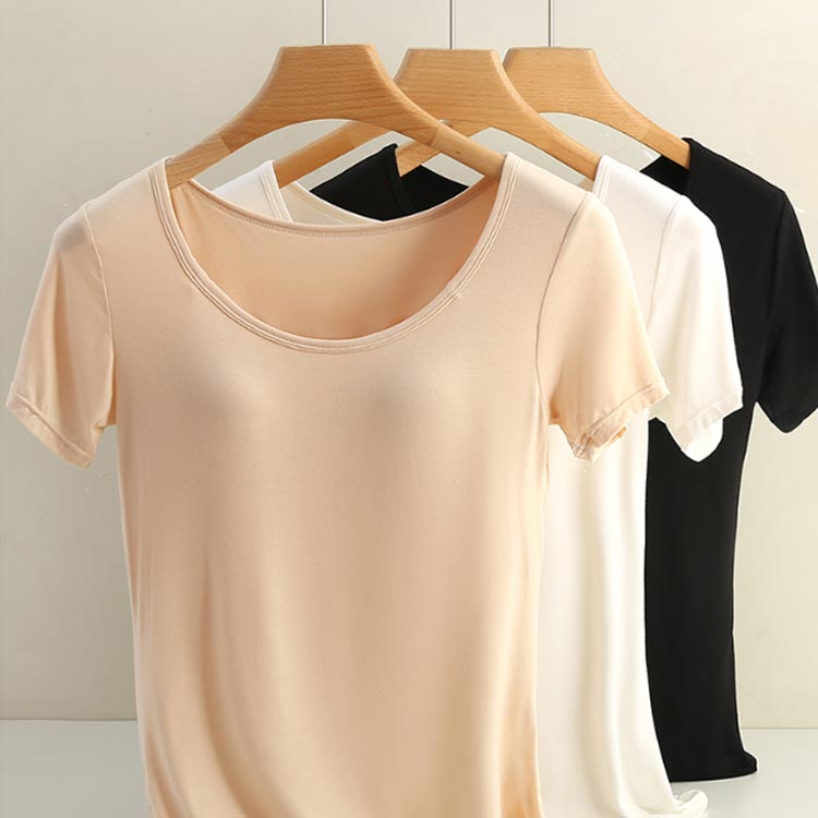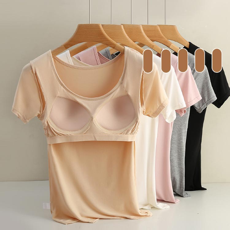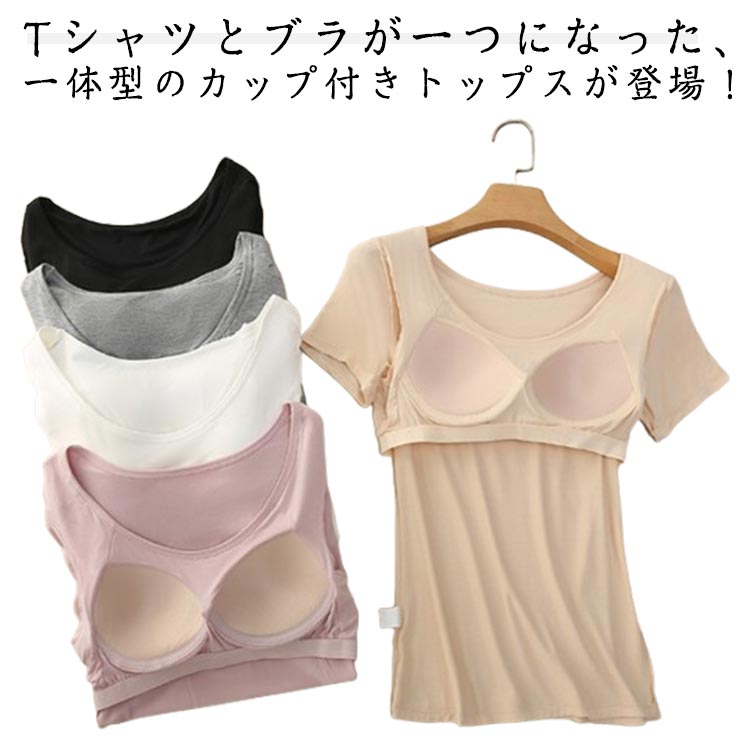 カップ付きTシャツ レディース 半袖 インナー 下着 ナイトウエア 大人気! 黒 白 グレー 肌色 ピンク M L XL 2XL