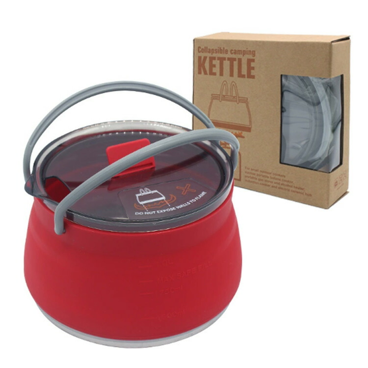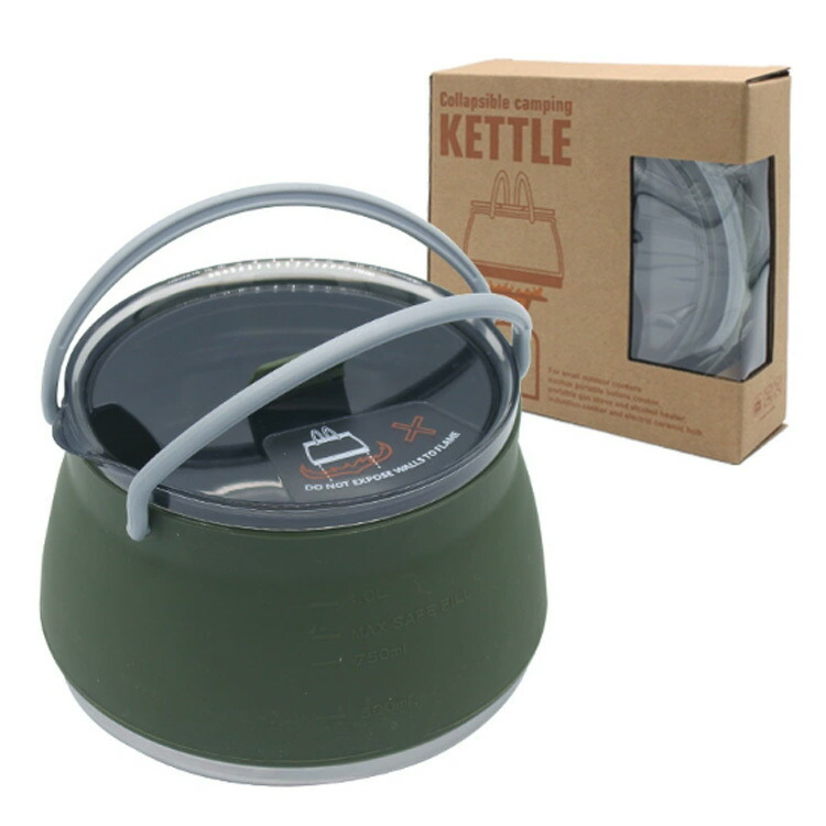 折りたたみケトル キャンプ アウトドア 大容量 1L キャンプ用やかん 折り畳み式やかん ウォーターポート アウトドア用の調理器具 携帯ポート シリコーン ポット 直火 IH対応 や ケトル
