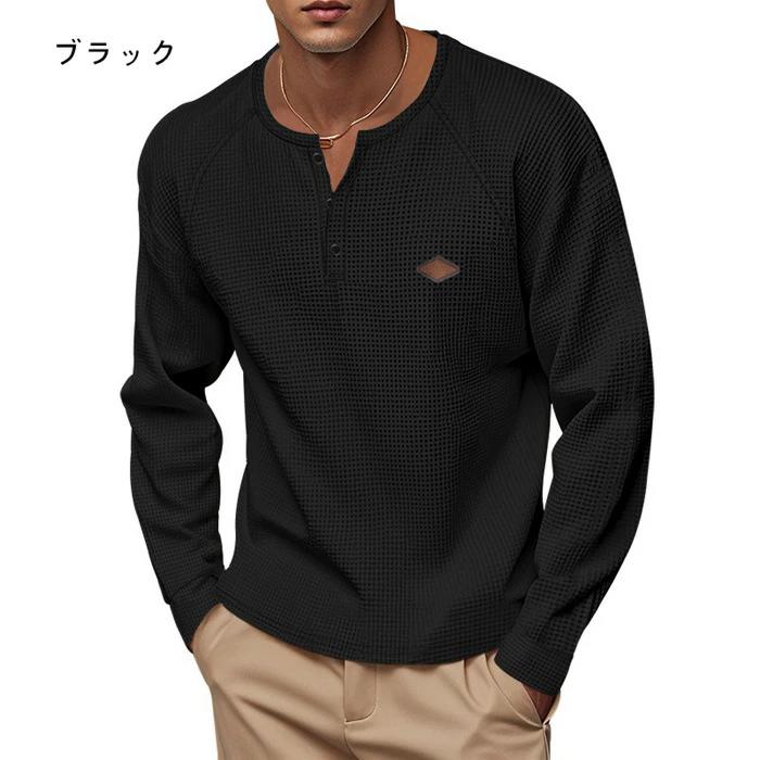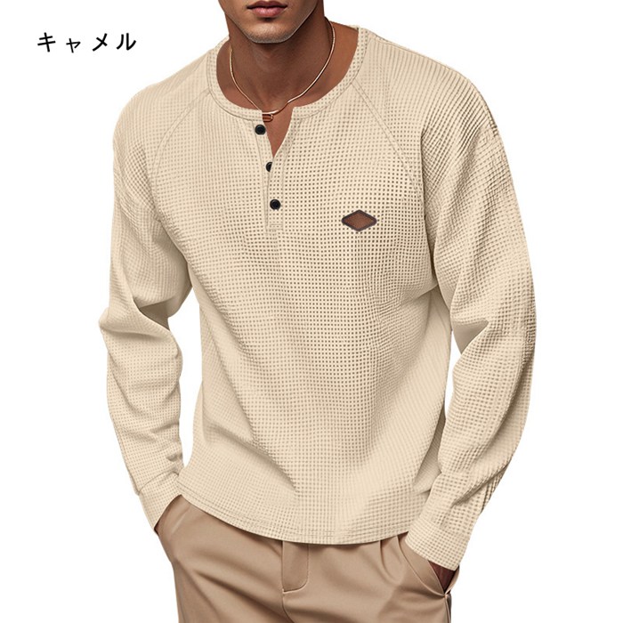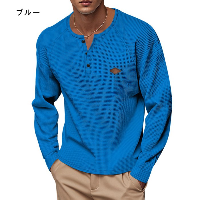 秋 ロングtシャツ ワッフルtシャツ メンズファッション 人気 ブルー ブラック キャメル 杏色 グレー ホワイト M L XL 2XL 3XL