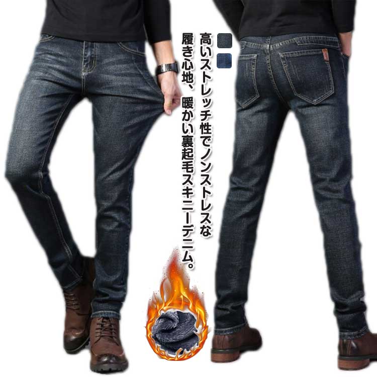 スキニーデニム 裏起毛 デニムパンツ メンズファッション 新登場! ブラック ブルー 28 29 30 31 32 33 34 35 36 38 40