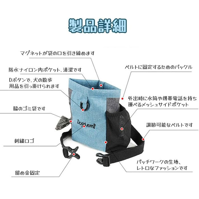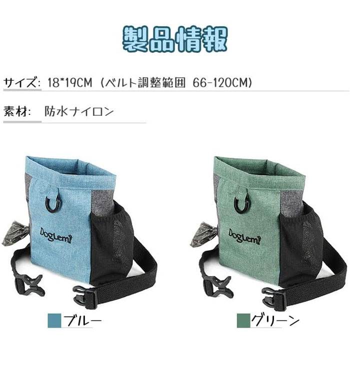 トリーツポーチ 犬 トリーツバッグ マ 犬用品 お出かけ お散歩グッズ 携帯おやつケース 新登場! ブルー グリーン