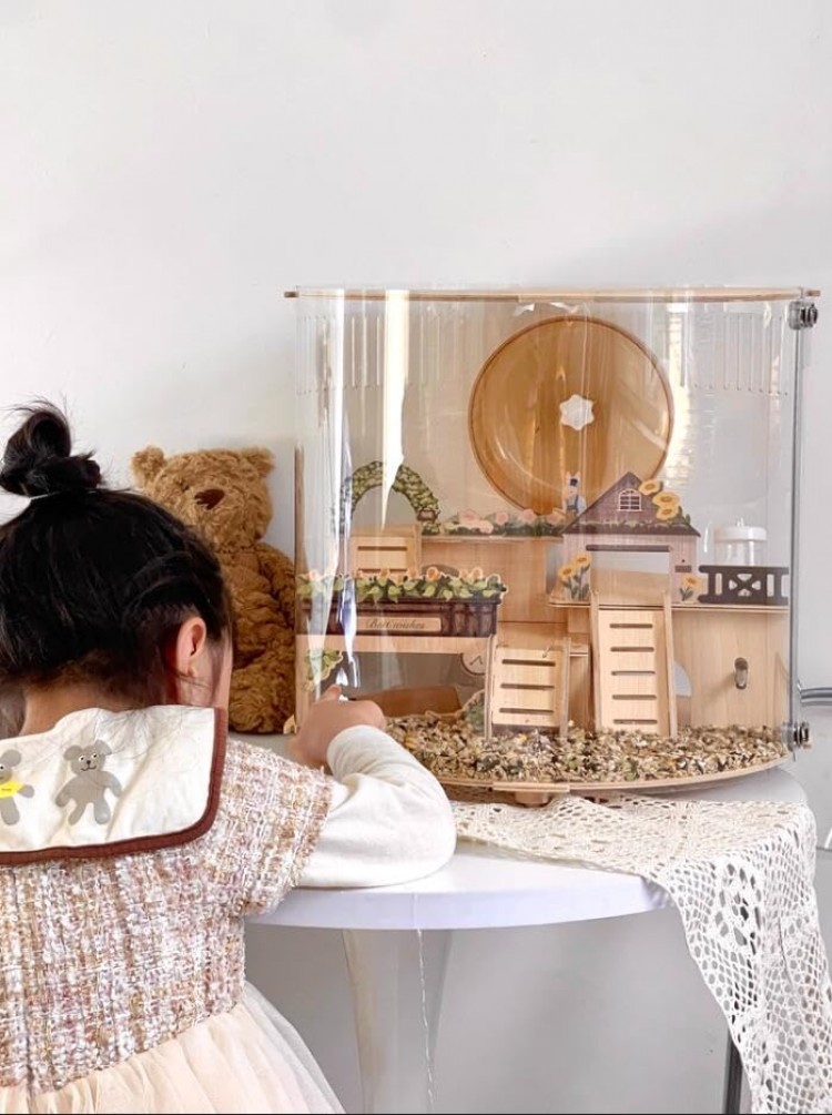 ハムスター ケージ 透明 40*40* 木製天板 透明天板 透明天板 - ベアズネスト