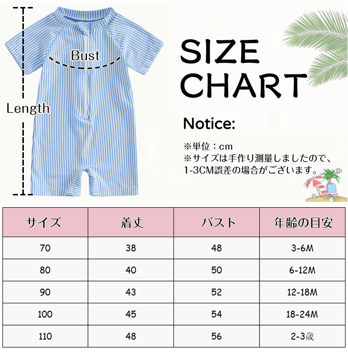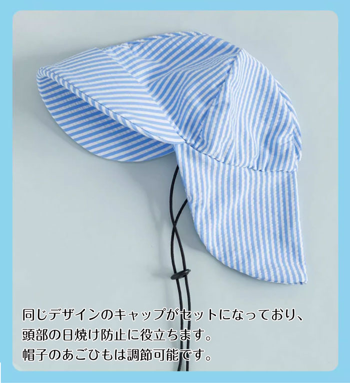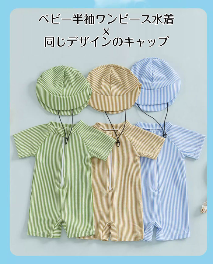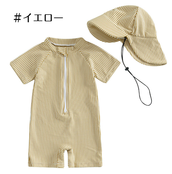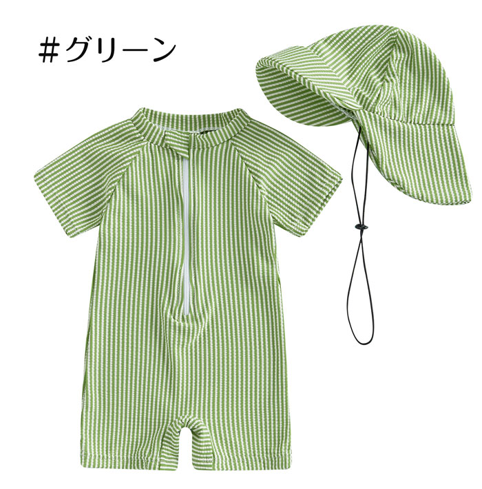 UVカット キャップ付き ロンパース水 キッズ ベビー マタニティ 続々登場 ブルー グリーン イエロー 70 80 90 100 110