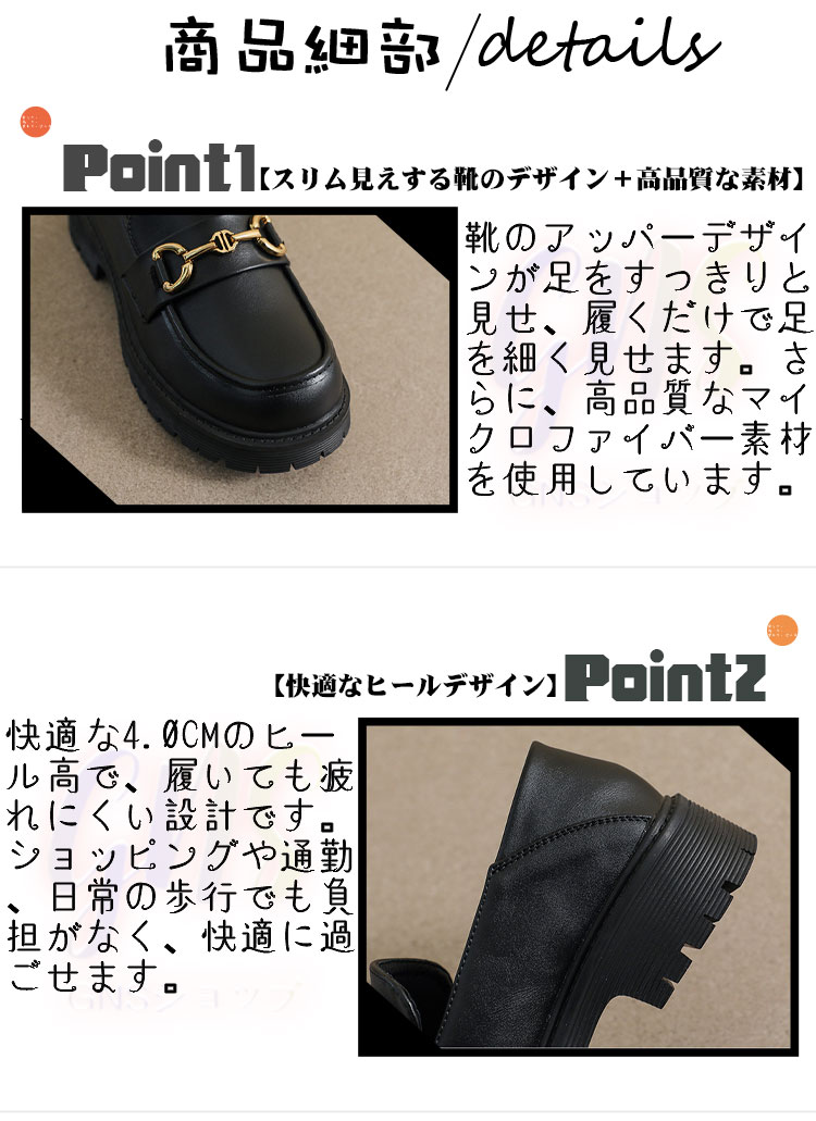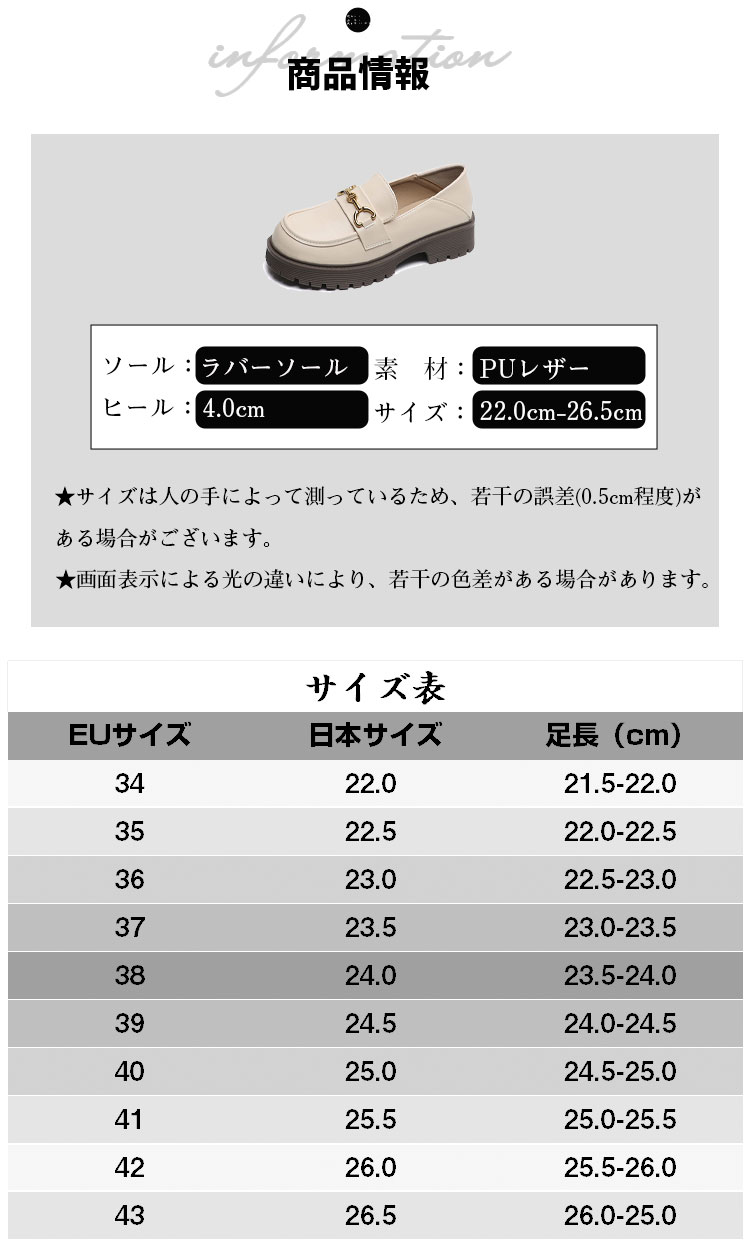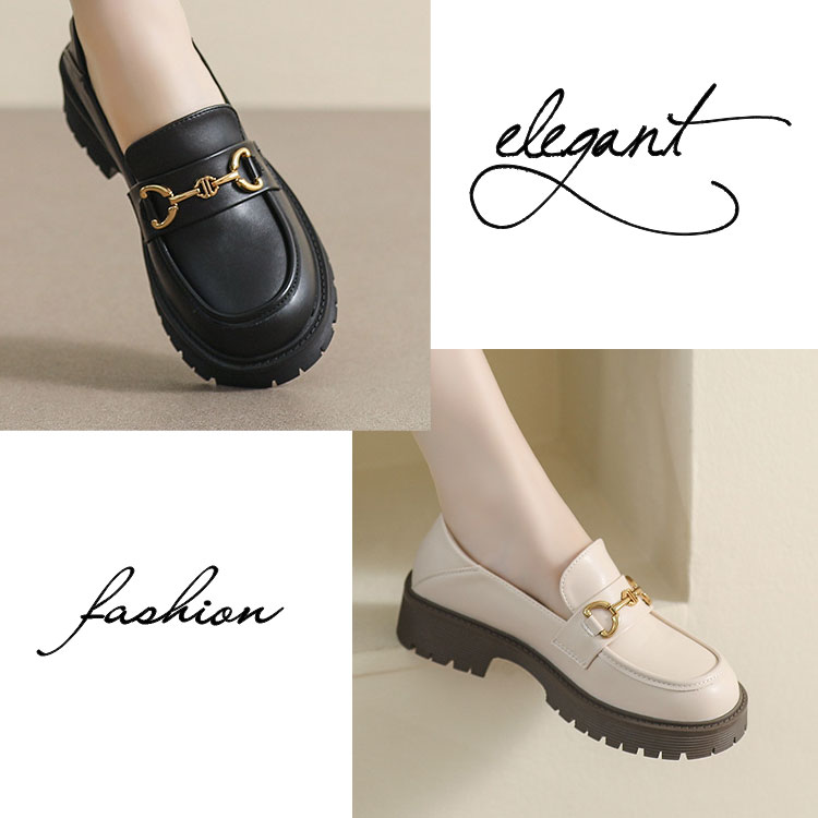 ローファー 厚底 飾り付け PUレザー 靴 豊富な品揃え ブラック ベージュ 22cm(34) 22.5cm(35) 23cm (36) 23.5cm (37) 24cm (38) 24.5cm (39) 25cm(40) 25.5cm(41) 26cm(42) 26.5cm(43)