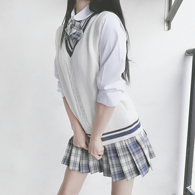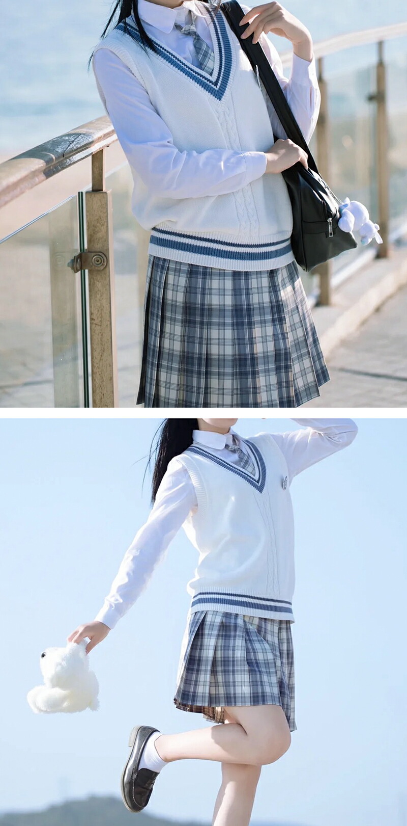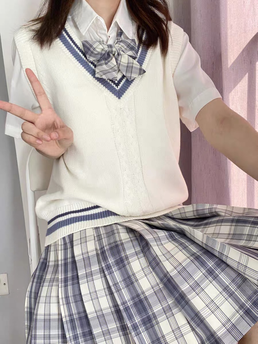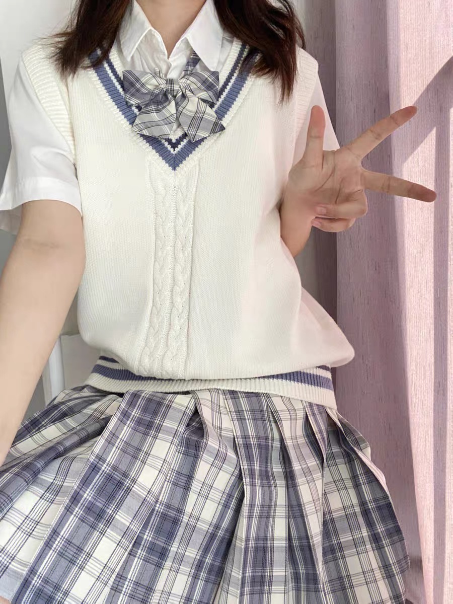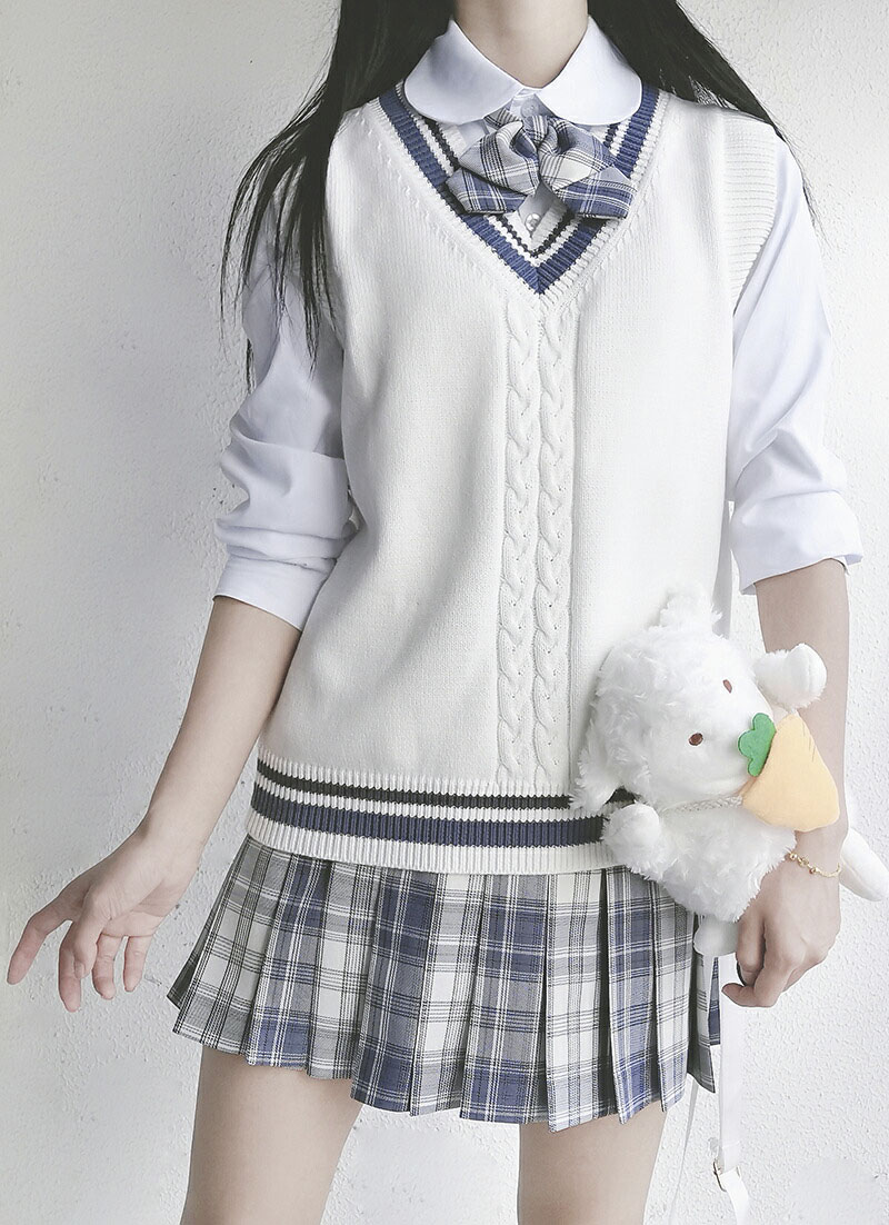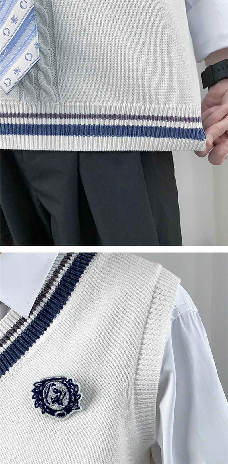 スクール ベスト 学生 綿 ライン入り フォーマル ニットベスト Vネック ホワイト ケーブル編み 年間使いやすい 男女兼用 ユニセックス セーター 制服 学生服 高校 学校 小学生 通学 キ 中学生