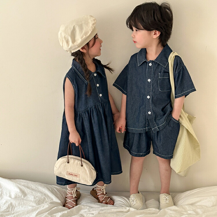 キッズ 子供服 こども服 子ども服 ベビー服 ジュニア ジュニア服 男の子 男児 ボーイズ boys 女の子 女児 ガールズ girls 男女兼用 ユニセックス 幼児 園児 小学生 低学年 中学年 高学年 アパレル 洋服 夏服 デニム デニム服 ワンピース デニムワンピース ノースリーブ 襟付き Aライン フレア セットアップ 上下セット 2点セット 半袖 半袖シャツ デニムシャツ ショートパンツ ハーフパンツ 短パン 半ズボン ウエストゴム ステッチ 白ステッチ フロントボタン 前開き ポケット リンクコーデ シミラールック ペアルック お揃い おそろい 兄弟 姉弟 姉妹 双子 兄妹 おしゃれ お洒落 かっこいい かわいい 可愛い 大人っぽい シンプル ナチュラル カジュアル 韓国 韓国服 韓国子供服 インディゴ ネイビー 紺 濃紺 デニム 綿 コットン 80cm 90cm 100cm 110cm 120cm 130cm 140cm 150cm 春 夏 秋 春夏 通園 通学 保育園 幼稚園 小学校 お出かけ 遊び着 外遊び 旅行 海 プール キャンプ アウトドア テーマパーク 遊園地 デイリー 普段着 プレゼント ギフト 贈り物 誕生日 バースデー 夏休み 写真撮影 記念撮影