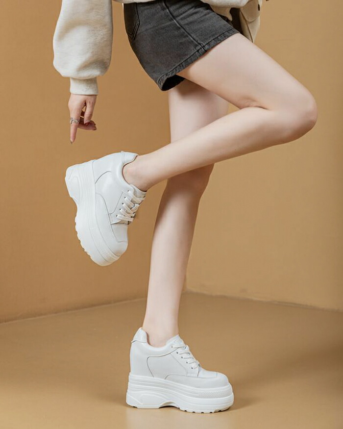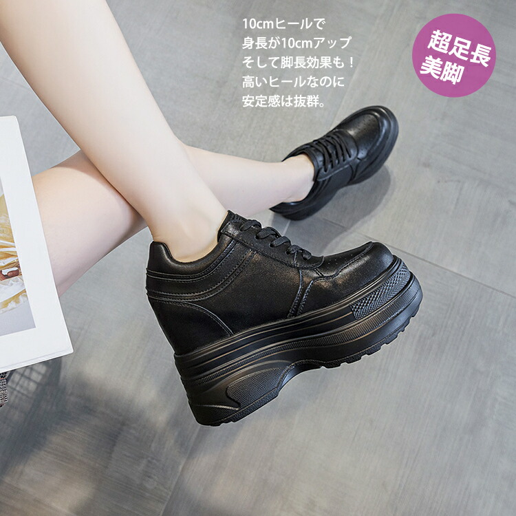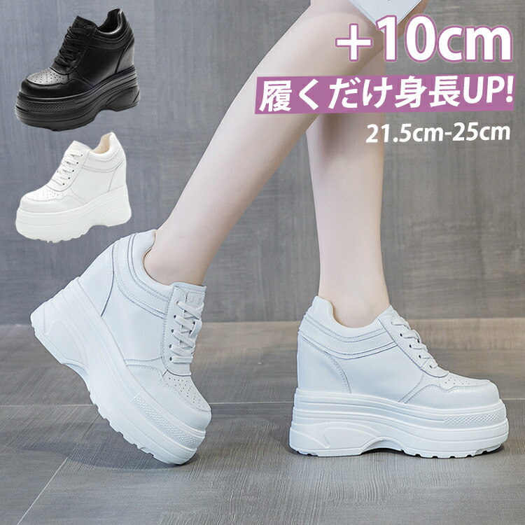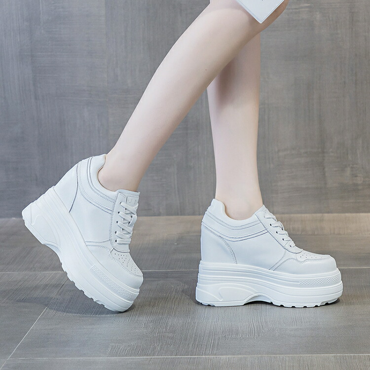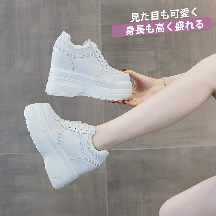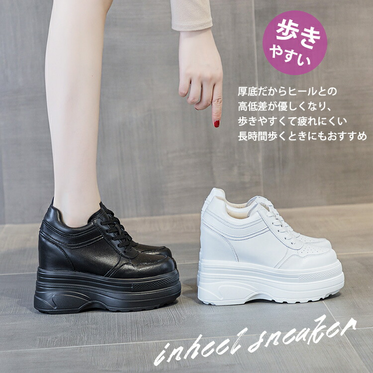 厚底スニーカー 10cm 身長アップ レディース きれいめ インヒール ウォーキングシューズ ヒールアップ 厚底靴 シークレットシューズ PUレザー カジュアル 黒 履きやすい 歩きやすい 軽量 白