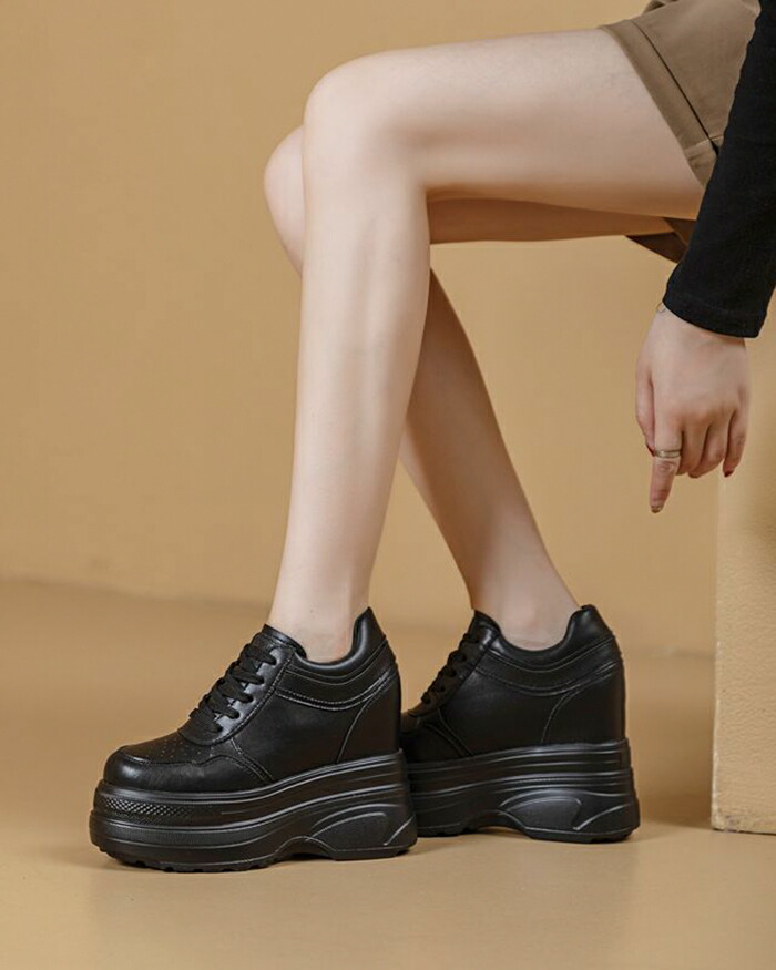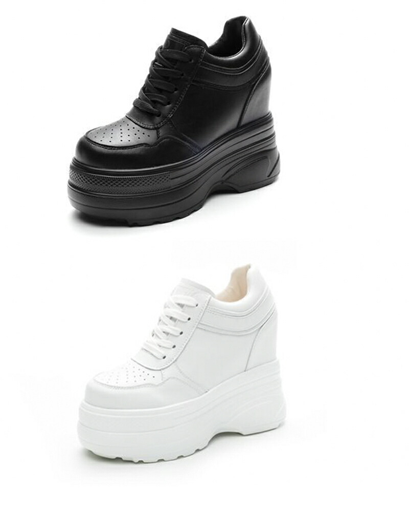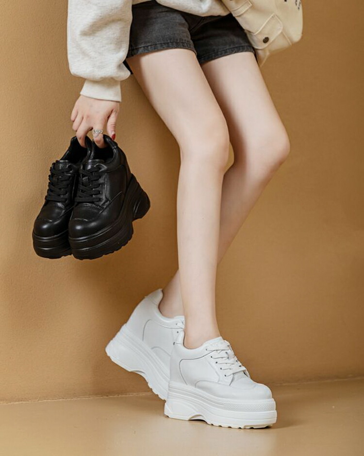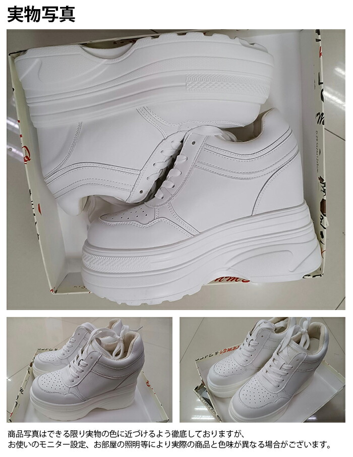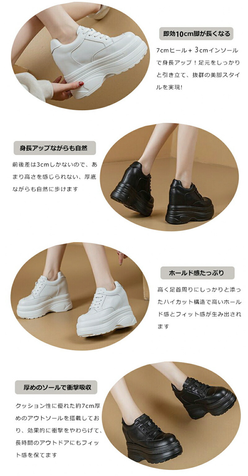 厚底スニーカー 10cm 身長アップ レディース きれいめ インヒール ウォーキングシューズ ヒールアップ 厚底靴 シークレットシューズ PUレザー カジュアル 黒 履きやすい 歩きやすい 軽量 白